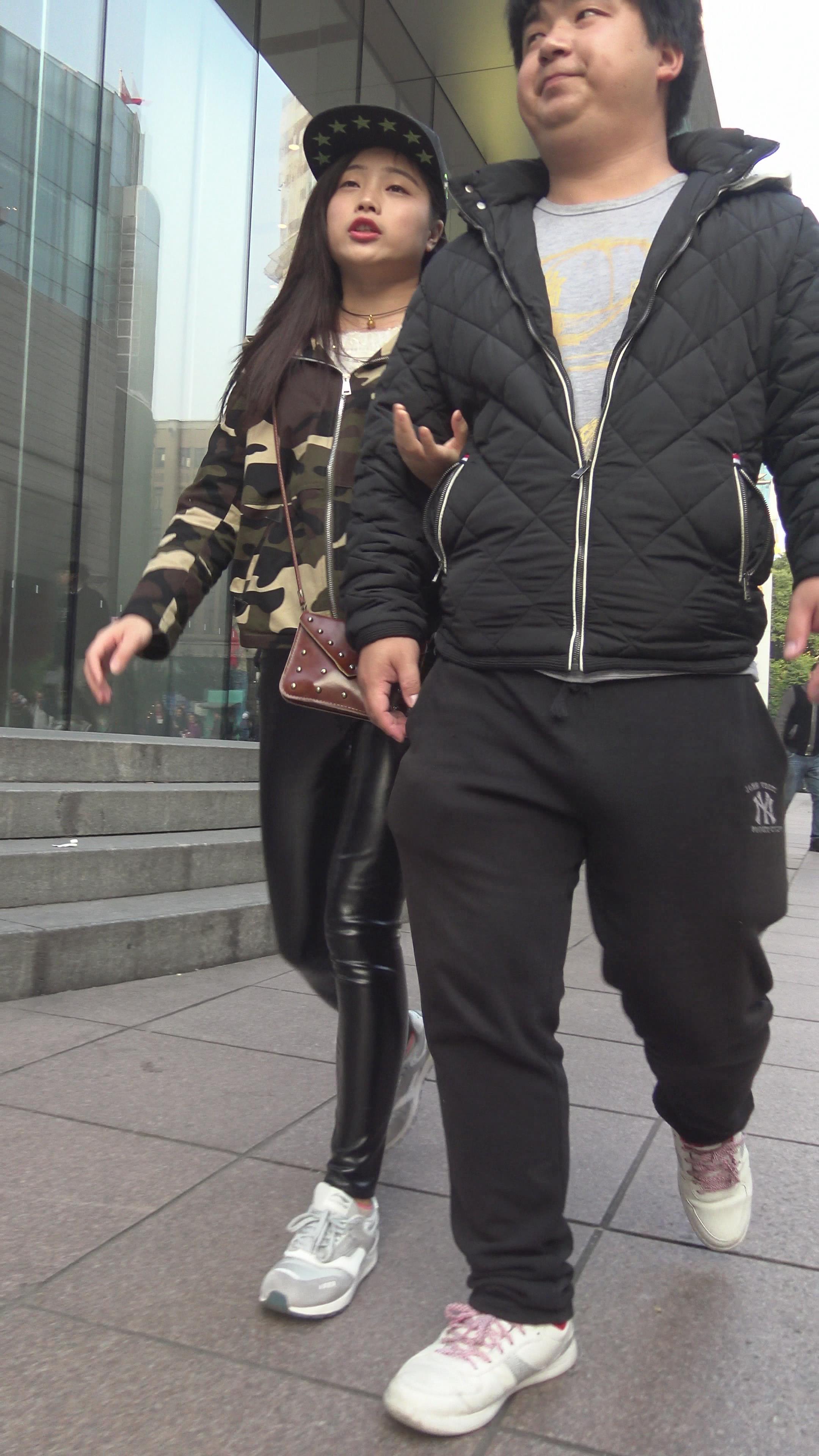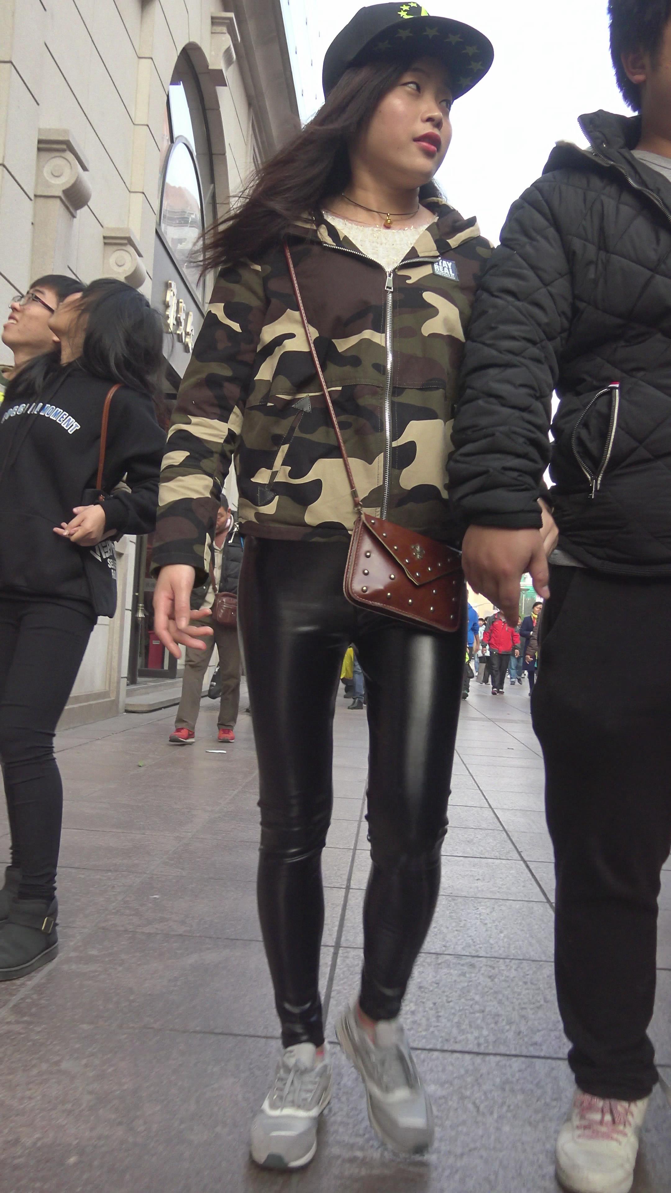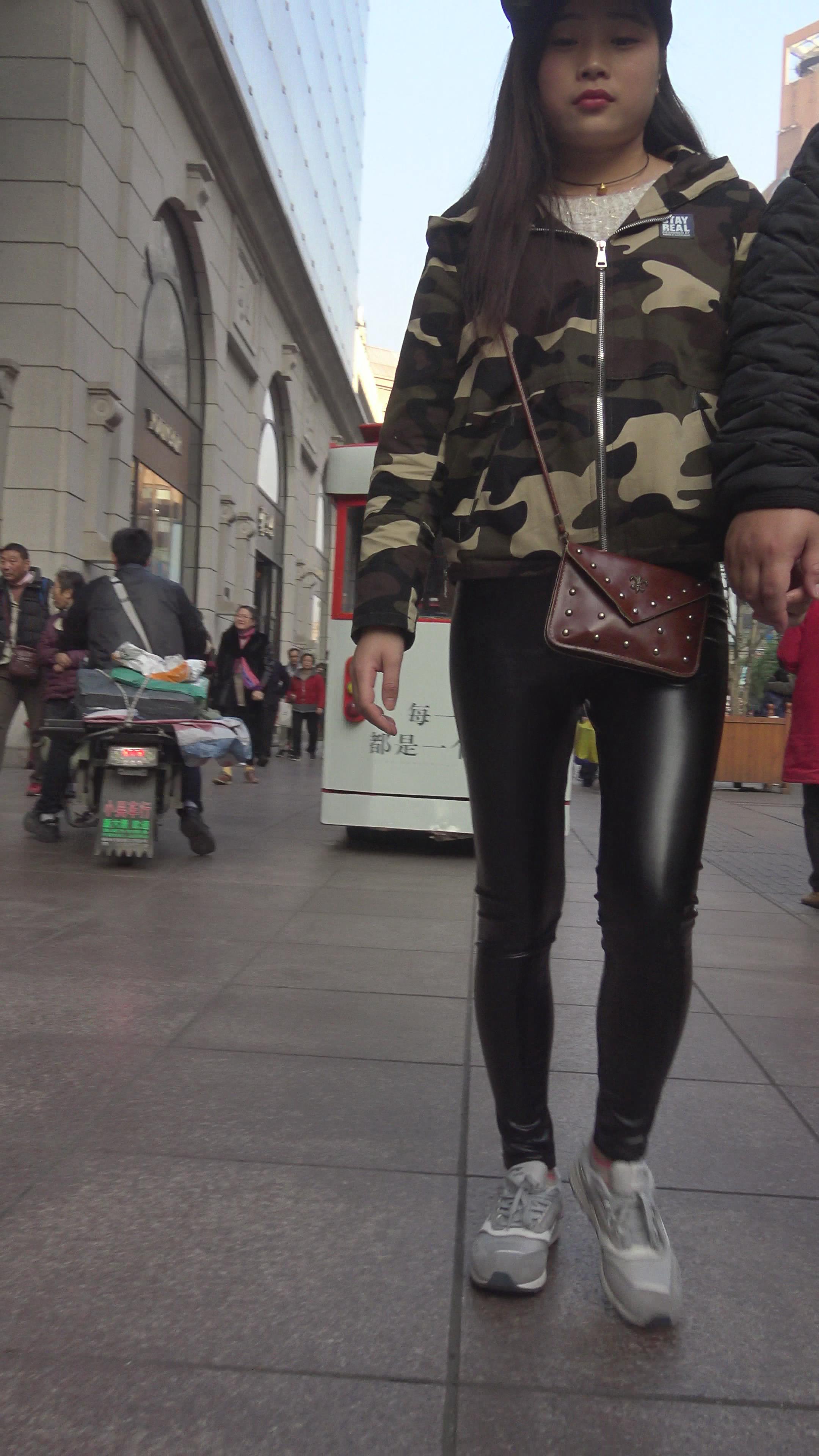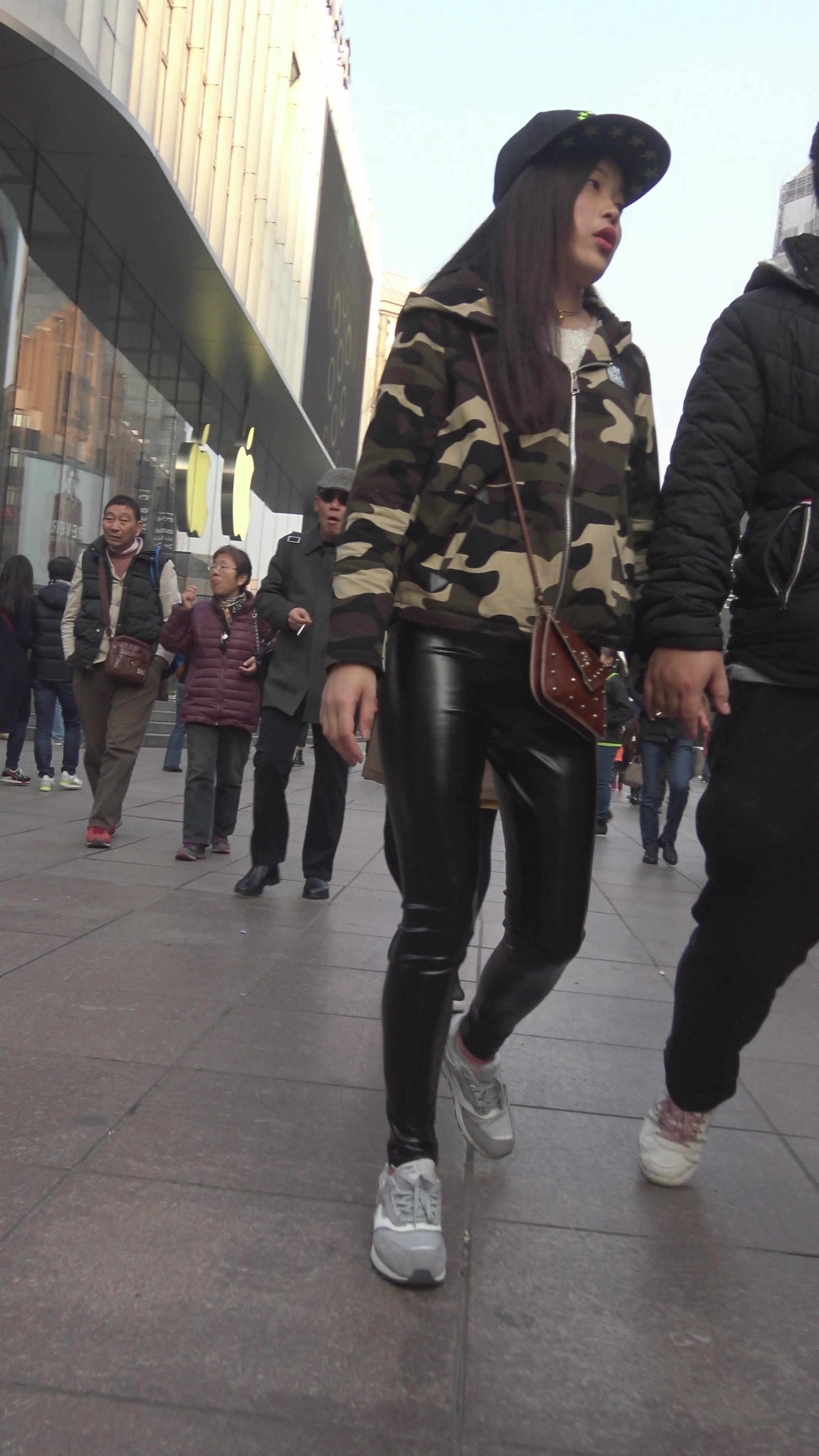 4K 迷彩服街拍皮裤小姐姐 编号3140