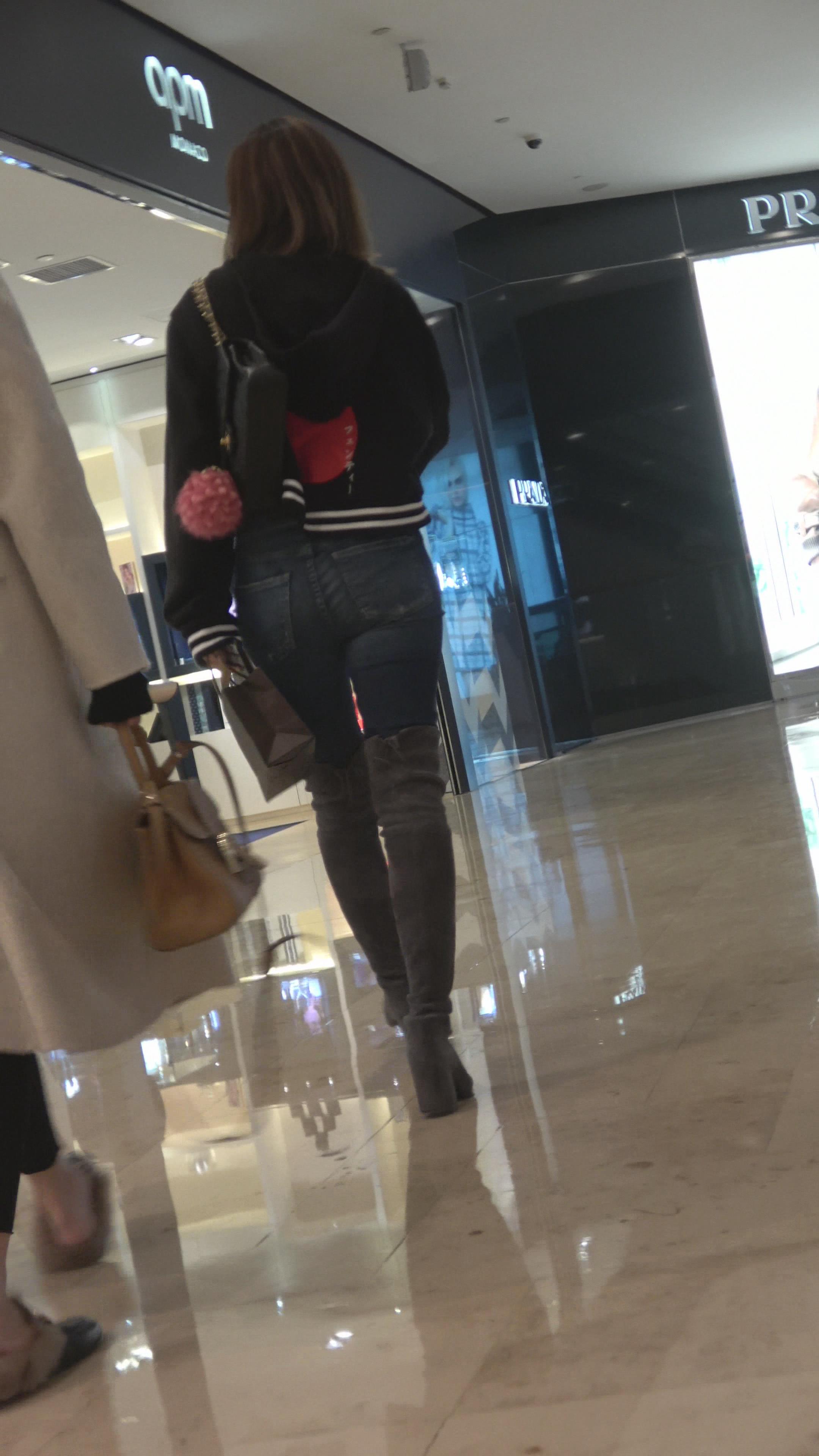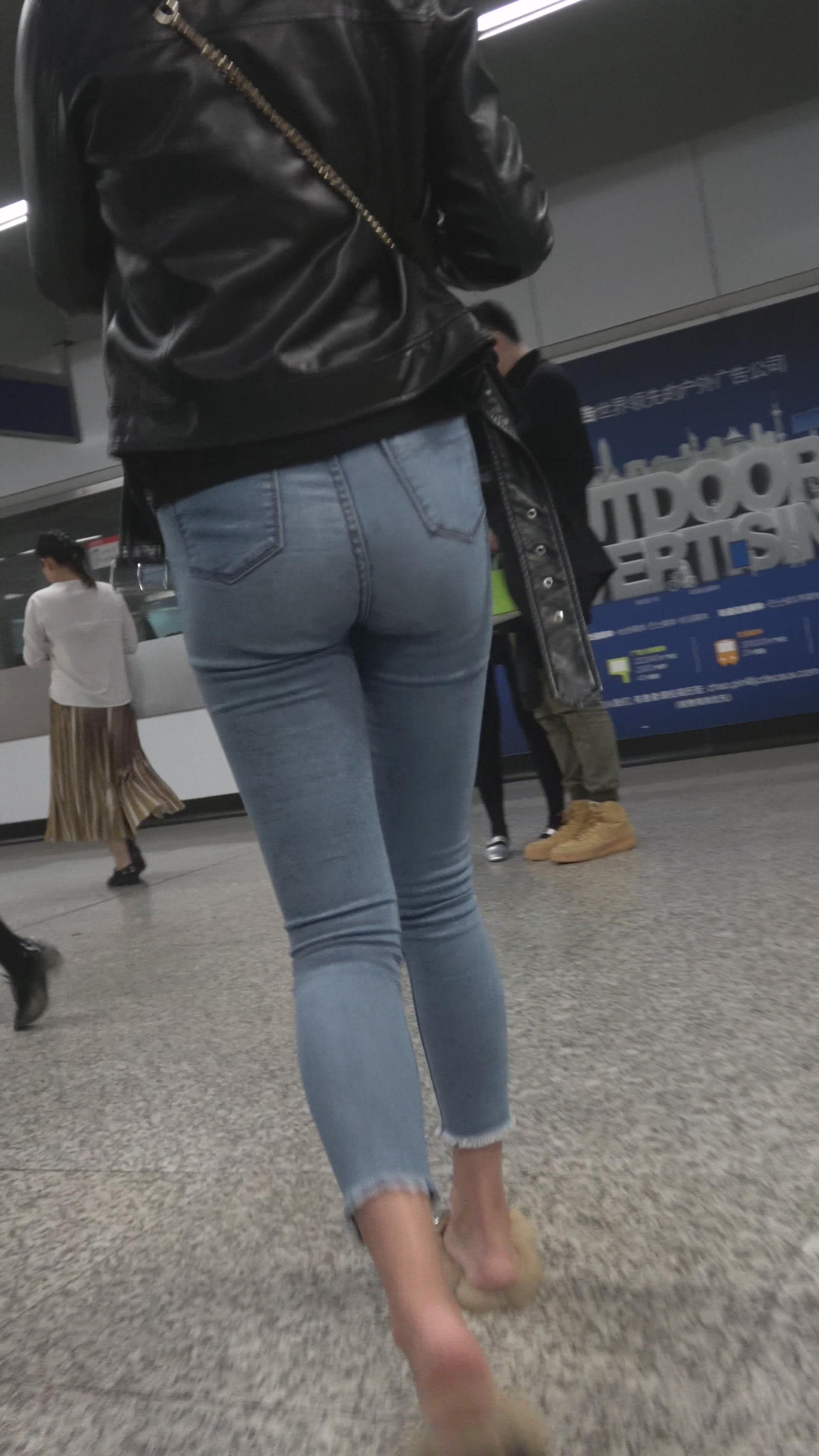 4K 街拍紧身牛仔美女在人群中总是那么抢眼 编号3147