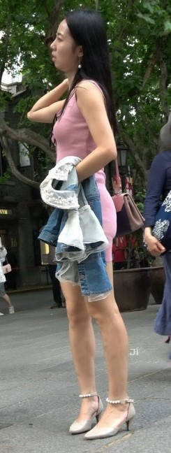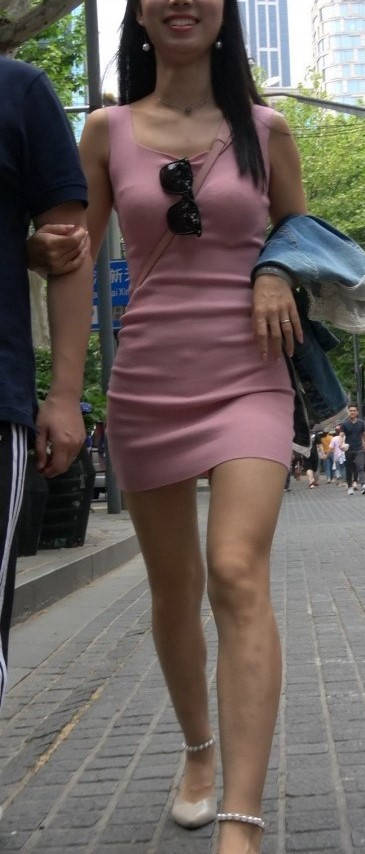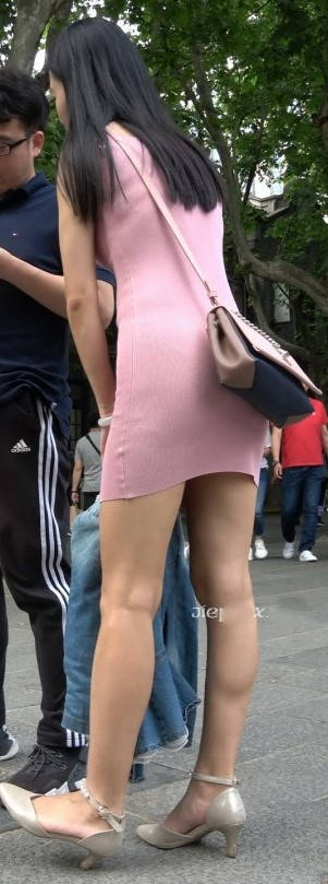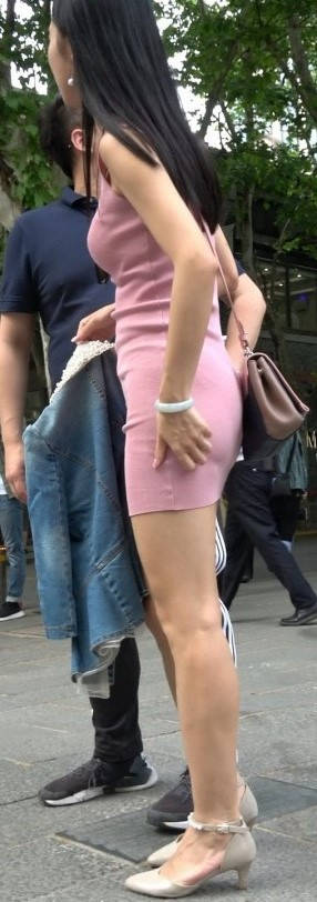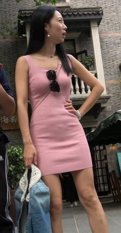 4K - 性感粉红包臀裙街拍高跟街拍美女 编号9419