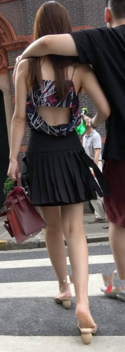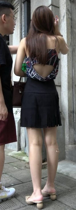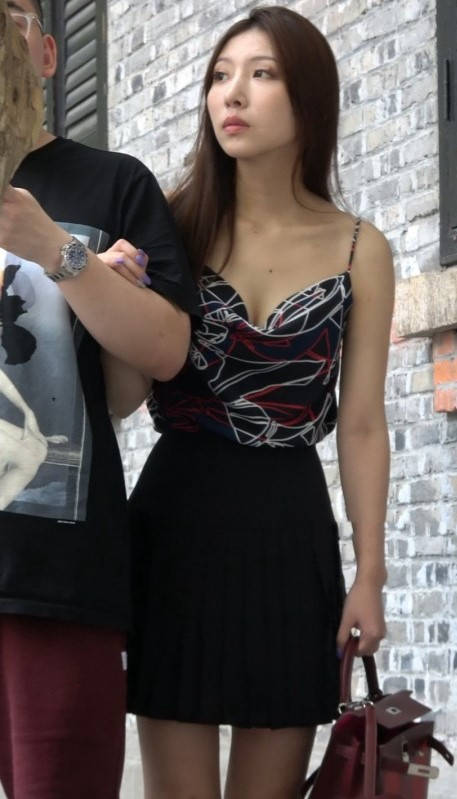 4K - 性感低胸吊带配百褶短裙妹子 编号9423