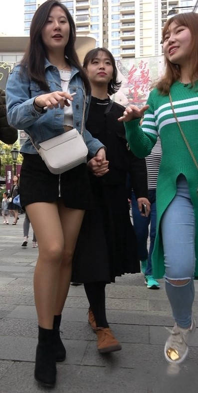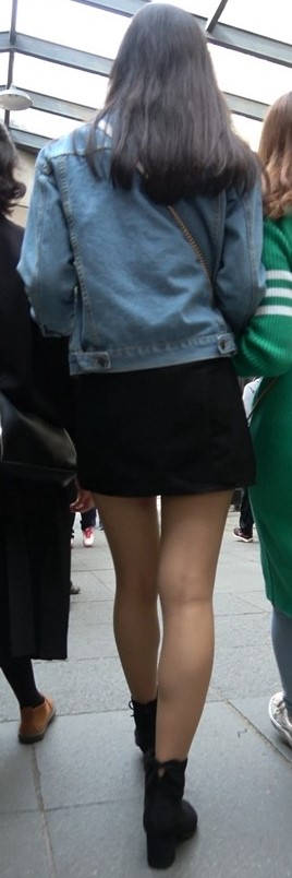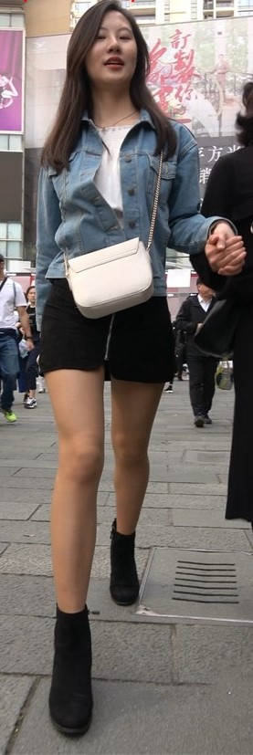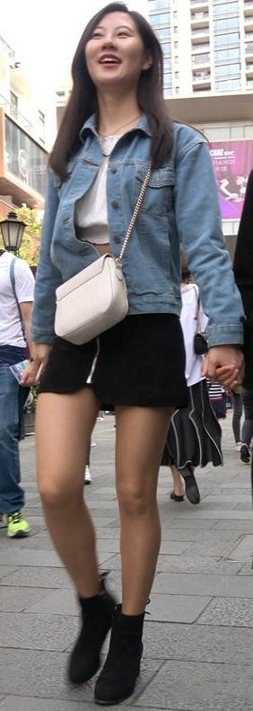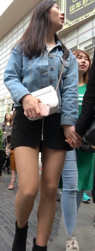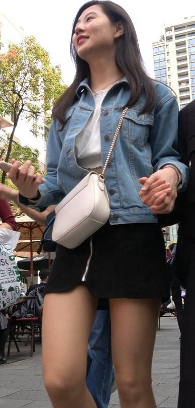 4K 街拍性感短裙美腿牛仔外套气质美女 编号9441