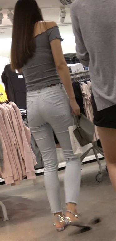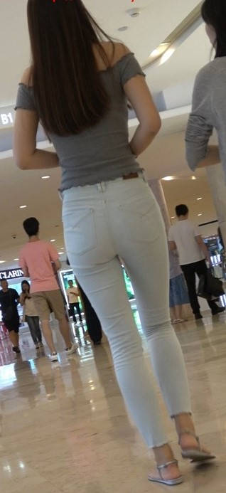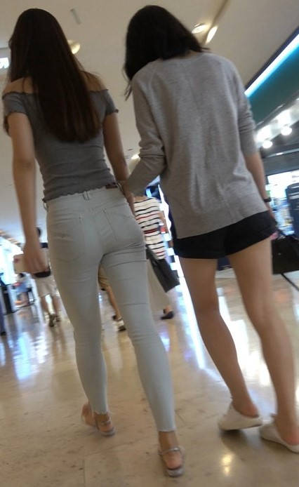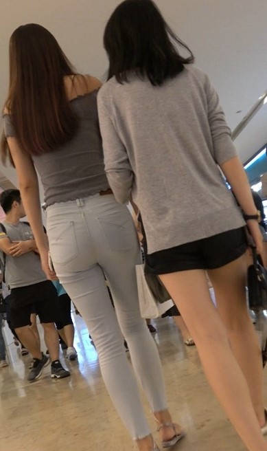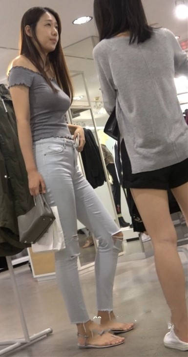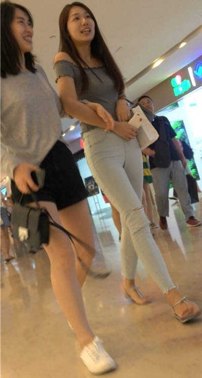 4K 仙女气质紧身裤一字肩街拍美女跟闺蜜逛商场 编号9449
