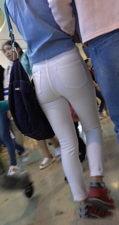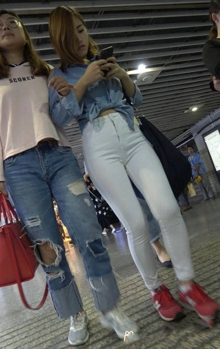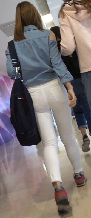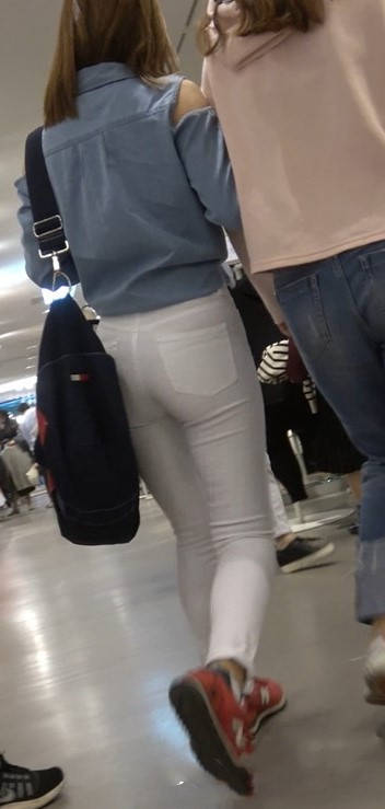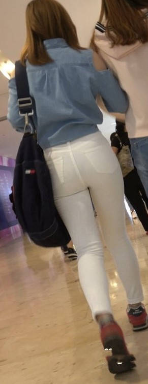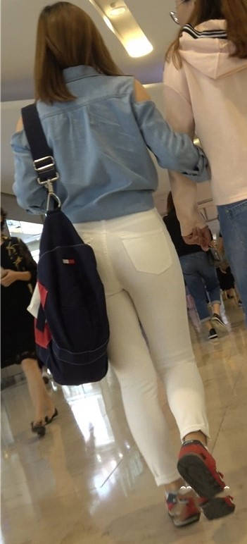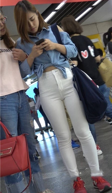 4K红色运动鞋街拍紧身白裤美臀漂亮美女小姐姐 编号9450