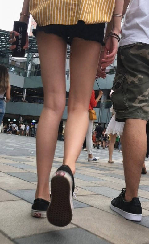 黑色帆布鞋配上修长 编号9185