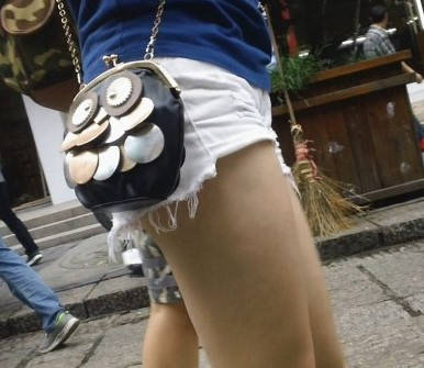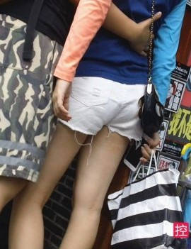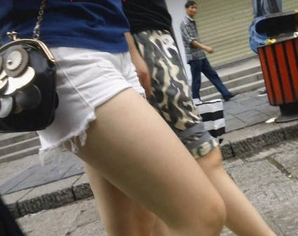 街拍白色牛仔热裤小妹 编号9225