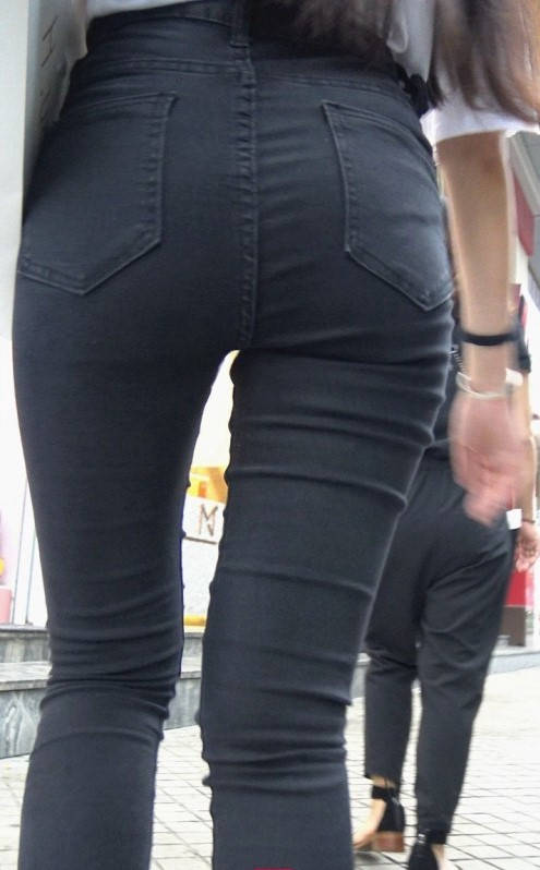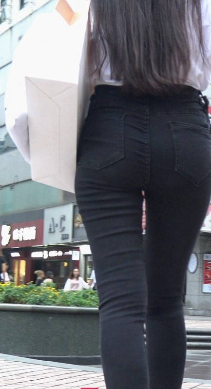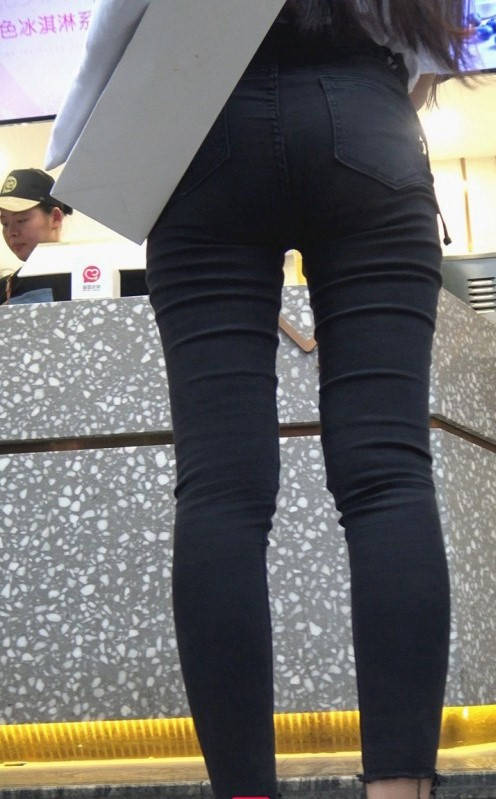 4K-超紧黑色牛仔大翘臀长发美女 编号9265