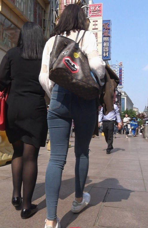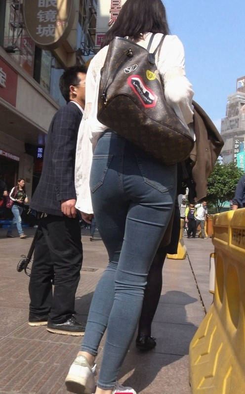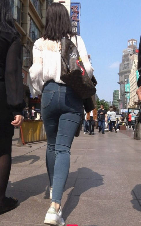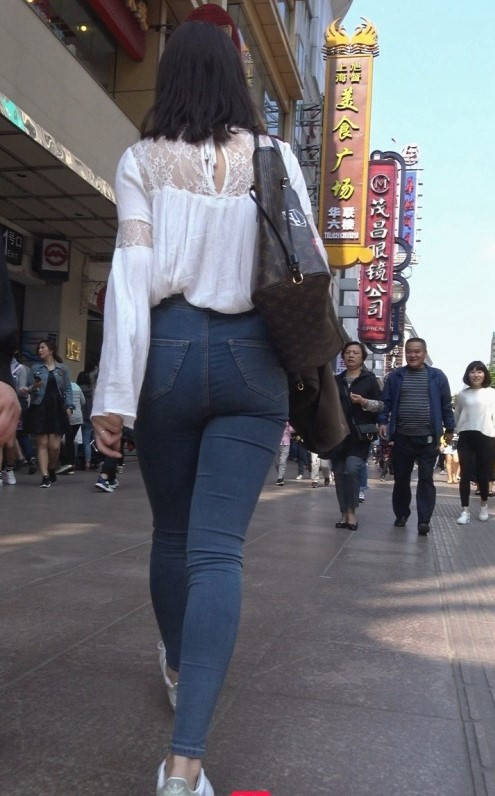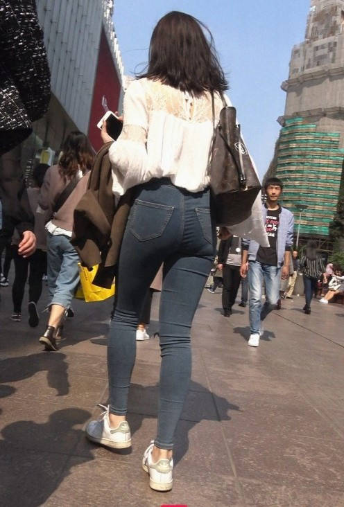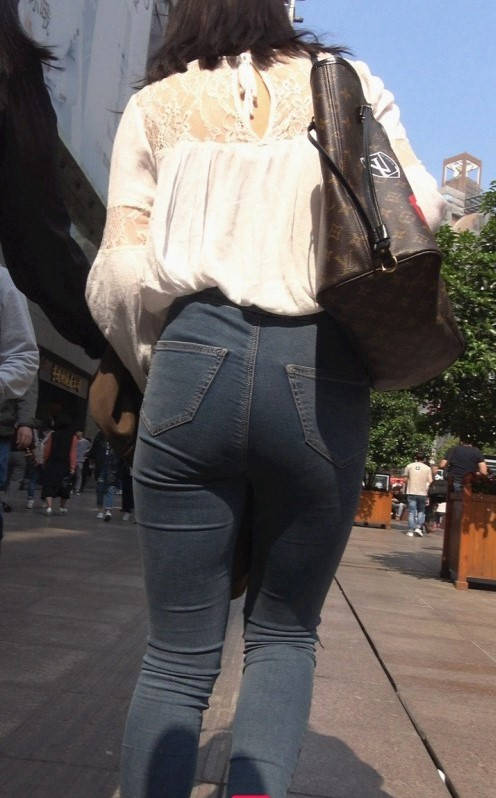 4K-苹果商店性感紧身牛仔裤饱满翘臀美女 编号9302