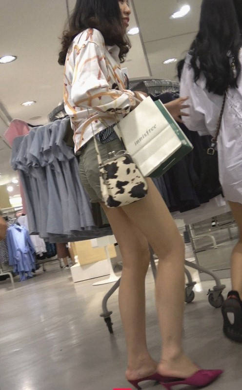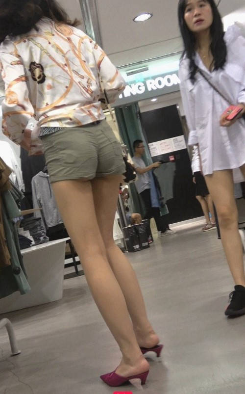 4K-买衣服的绿色热裤圆润翘臀极品长腿美女 编号9305