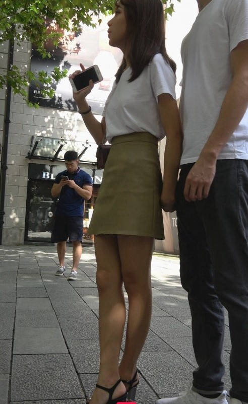 4K-皮短裙长腿高跟街拍美女 编号9324