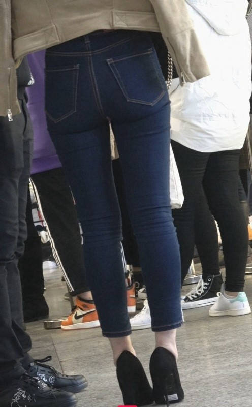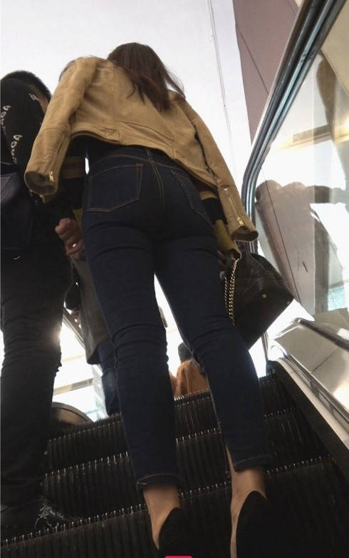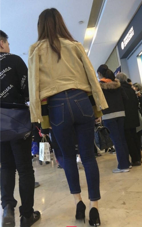 4K-蓝色紧绷牛仔裤漂亮翘臀极品美女 编号9341