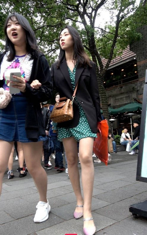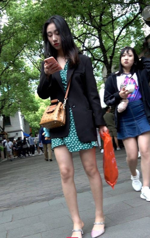 4K-气质连衣短裙长腿街拍高跟美女 编号9347