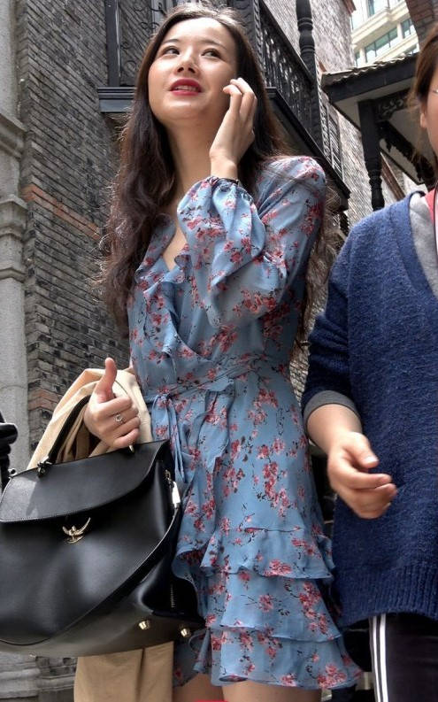 4K-连衣裙长腿街拍高跟美女 编号9348