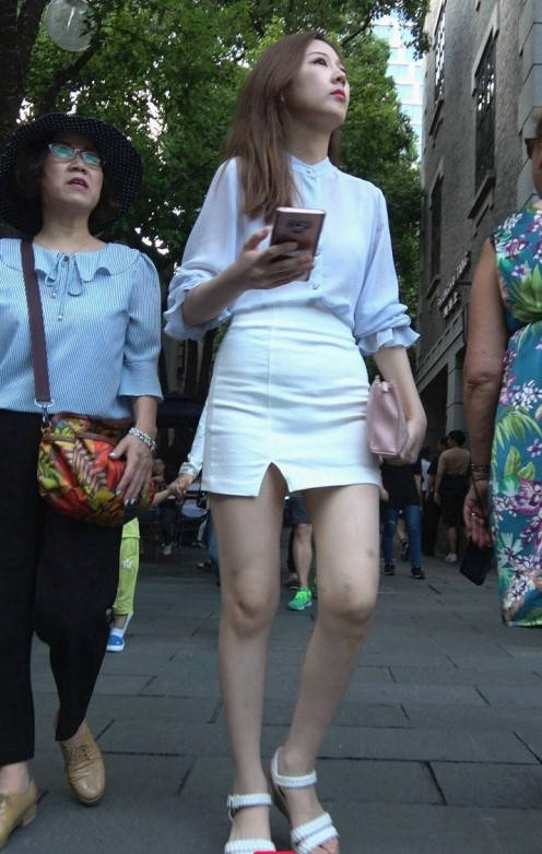 4K-性感透视衬衣短裙长腿街拍高跟美女 编号9367