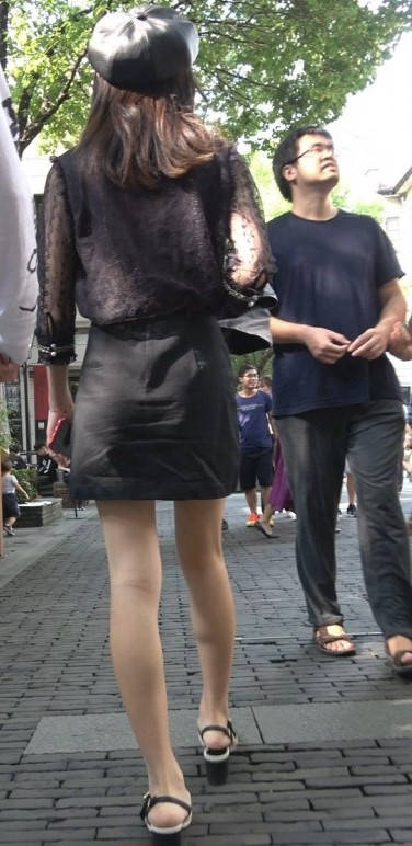 4K-性感短裙长腿街拍高跟美女 编号9377