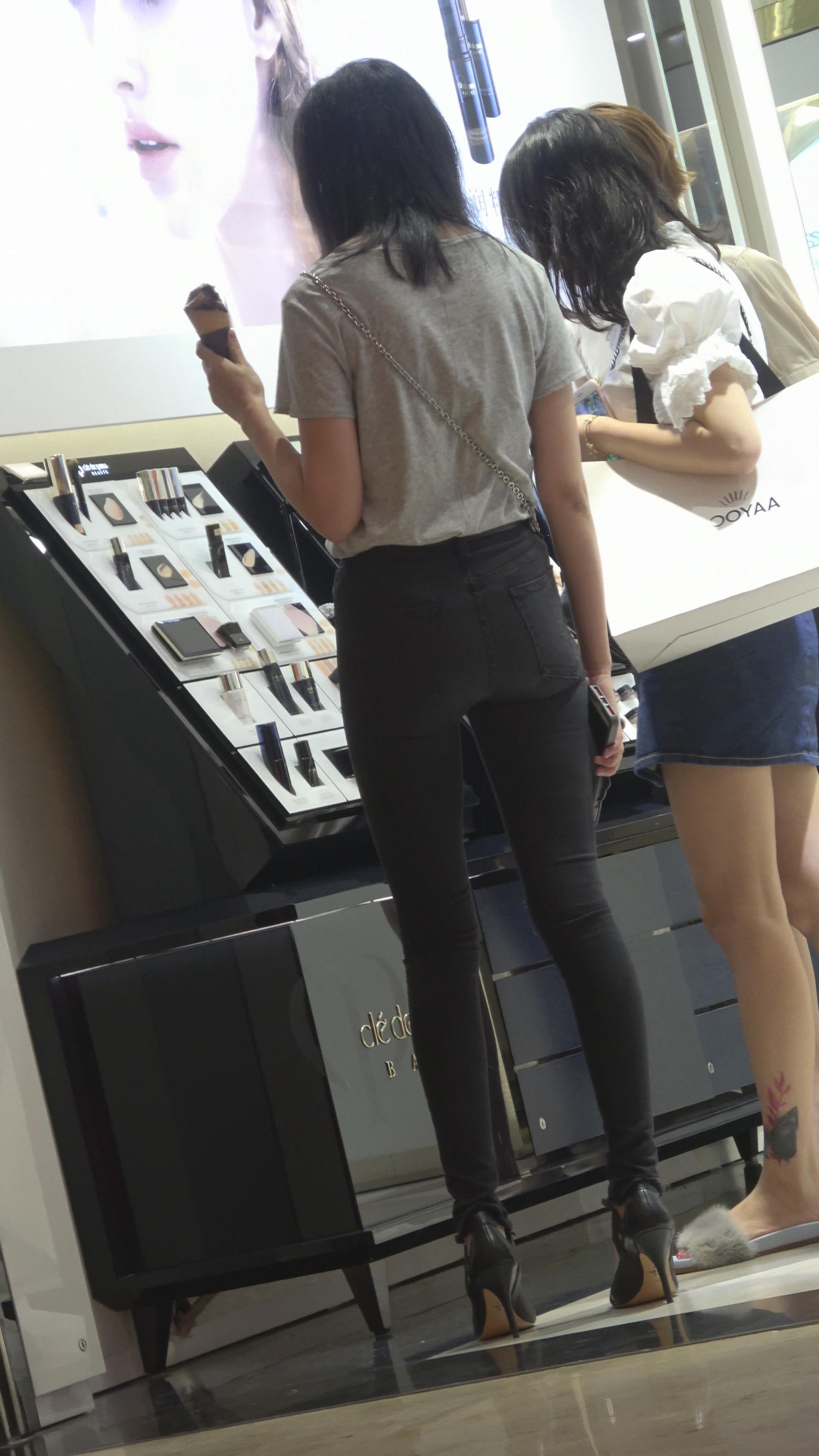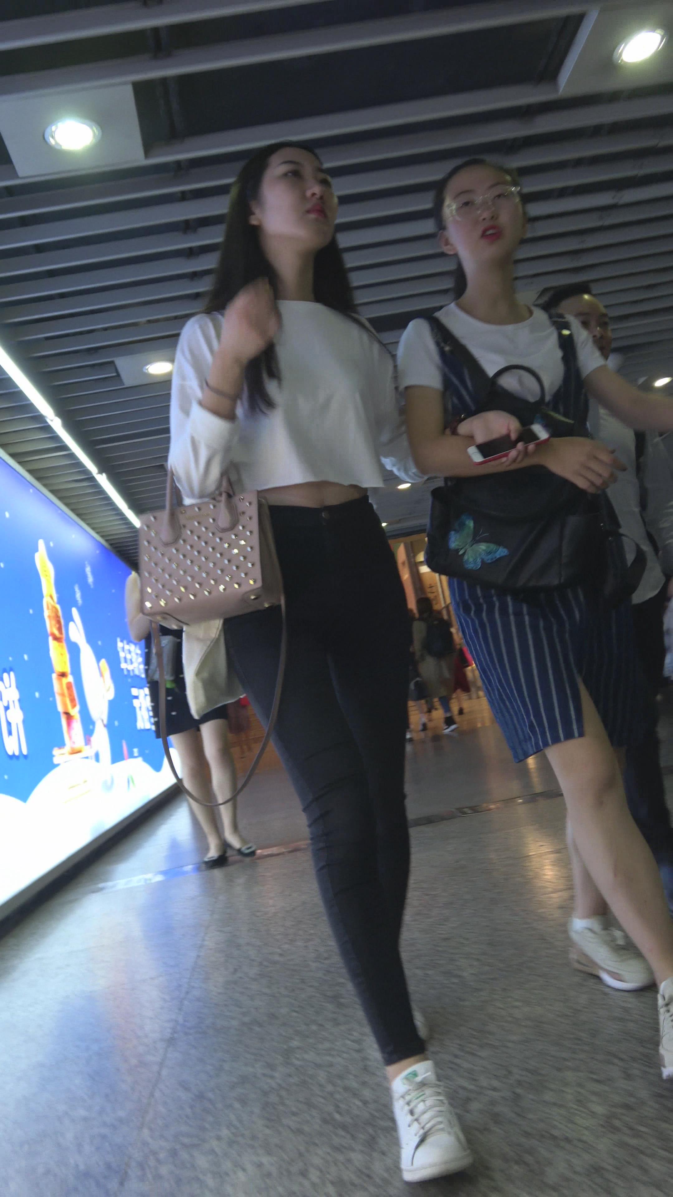 4K 黑色紧身裤蜜桃臀街拍美女 编号3178