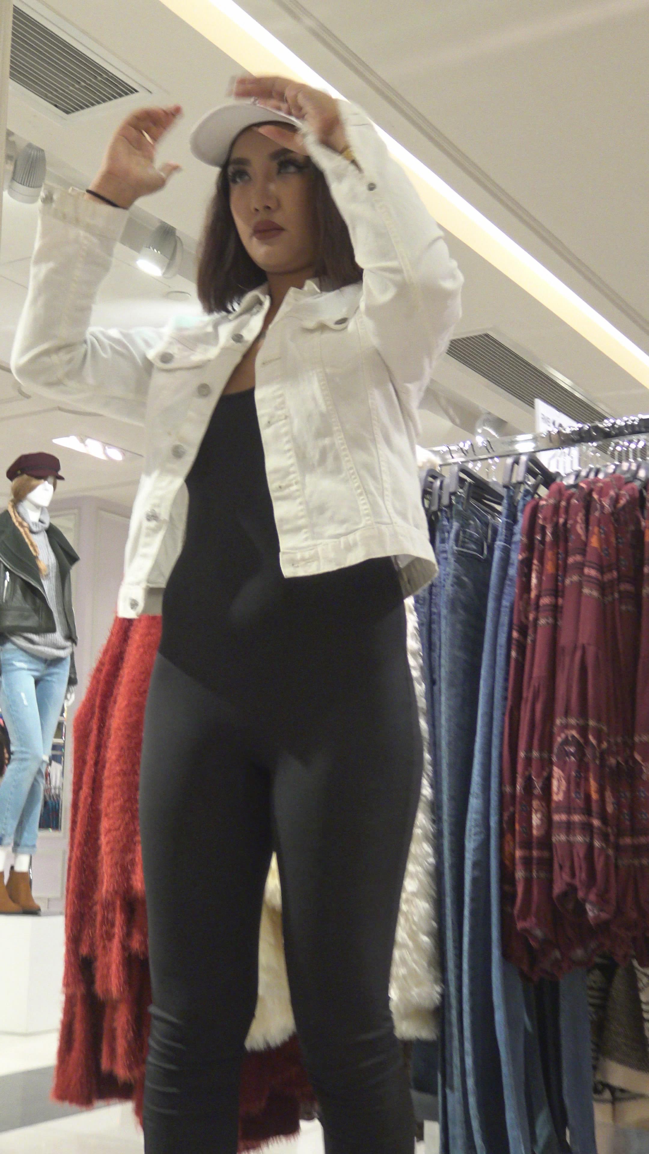 4K - 街拍黑色紧身裤美女试衣服 编号3189
