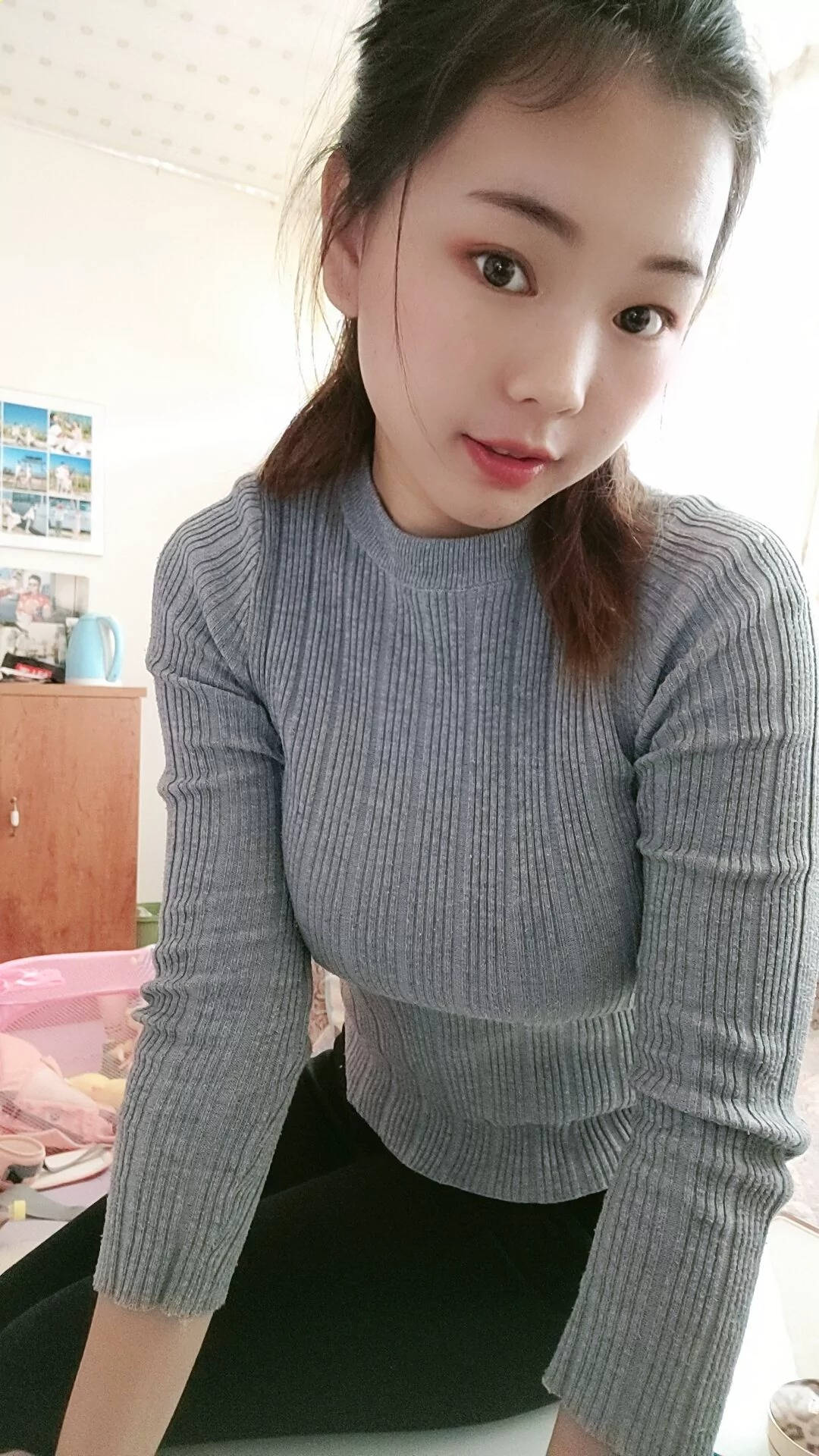 黑色长靴灰短裙性感黑丝SN8