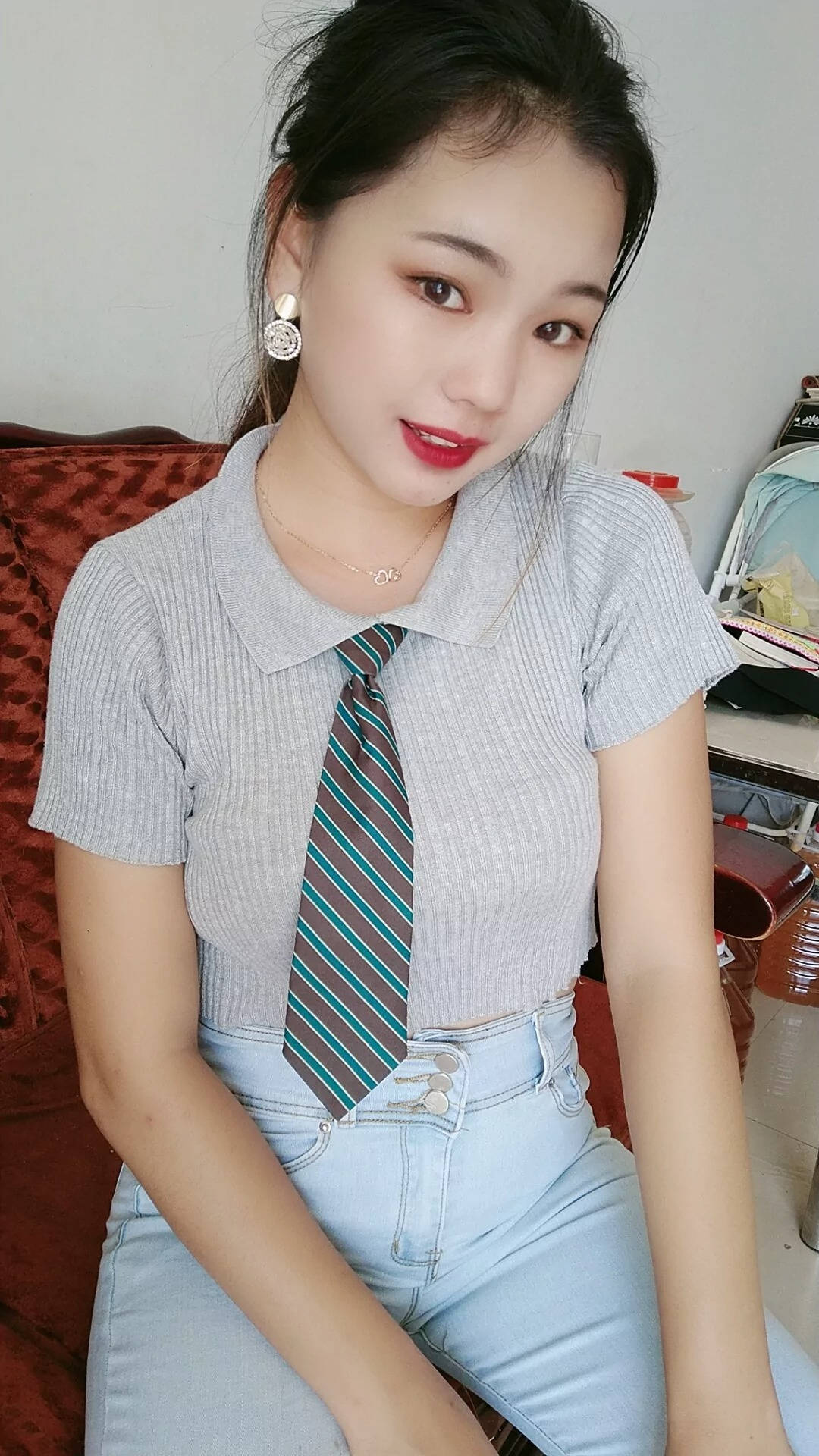 红色包臀裙性感黑丝美腿SN40