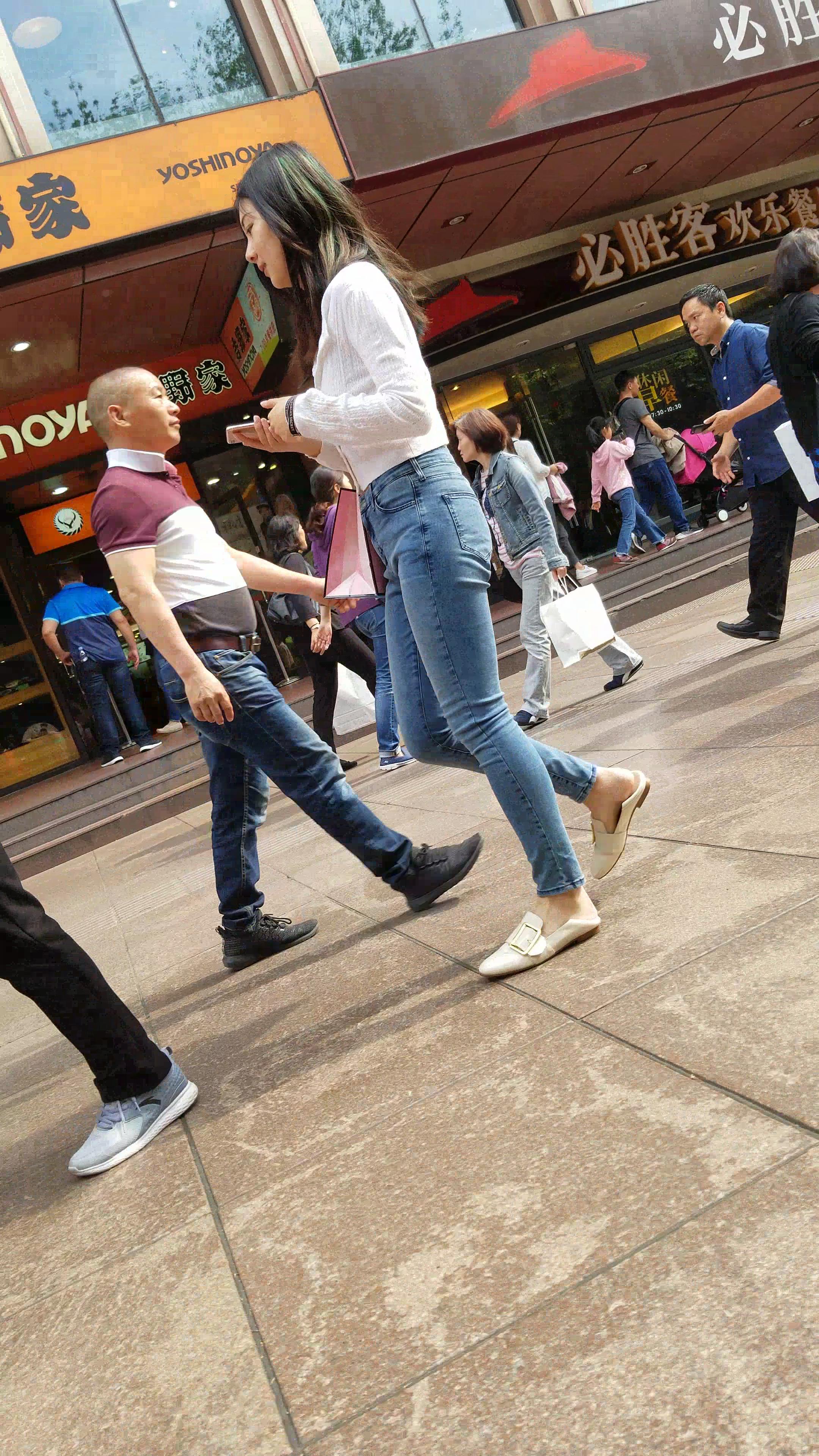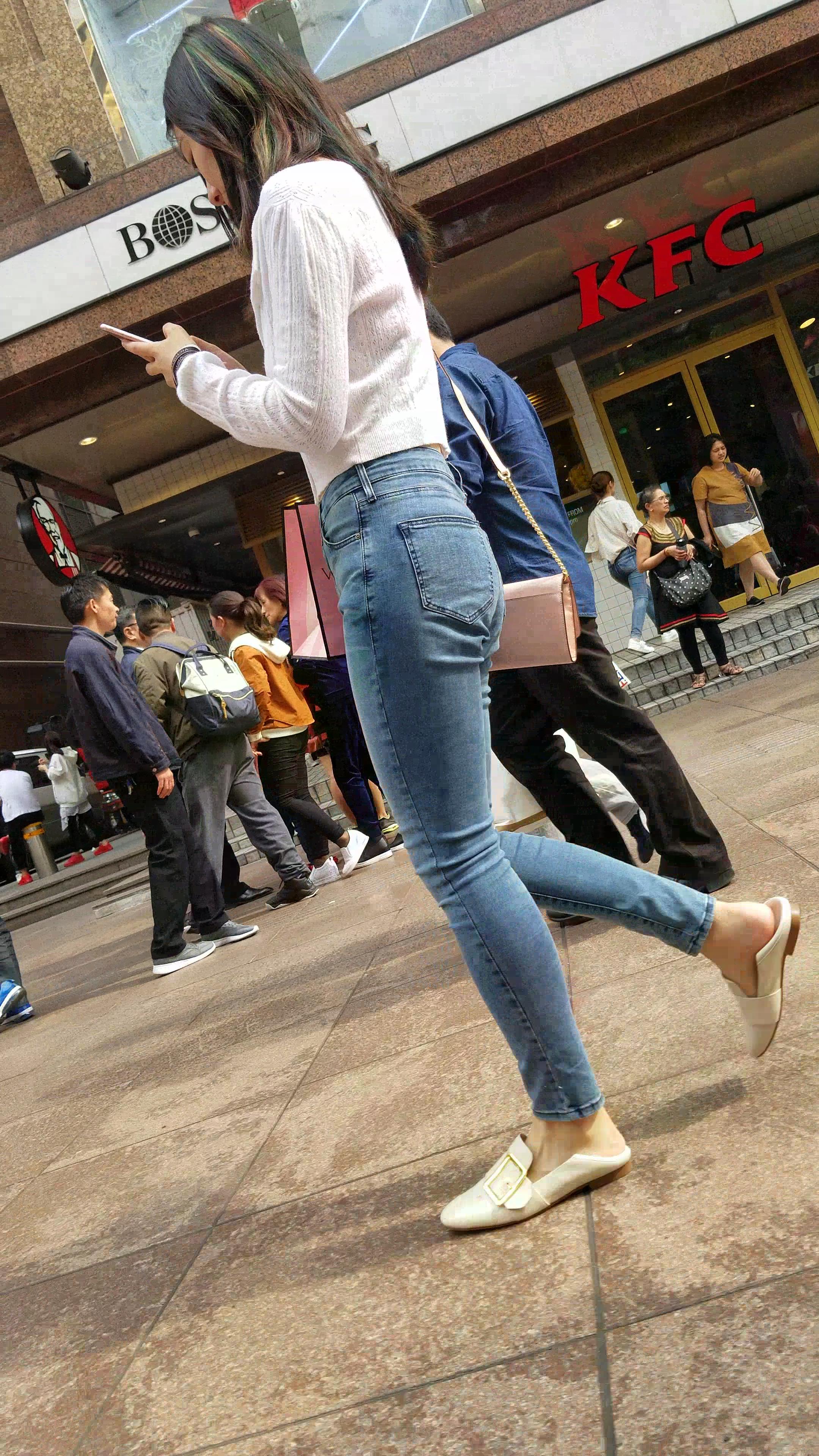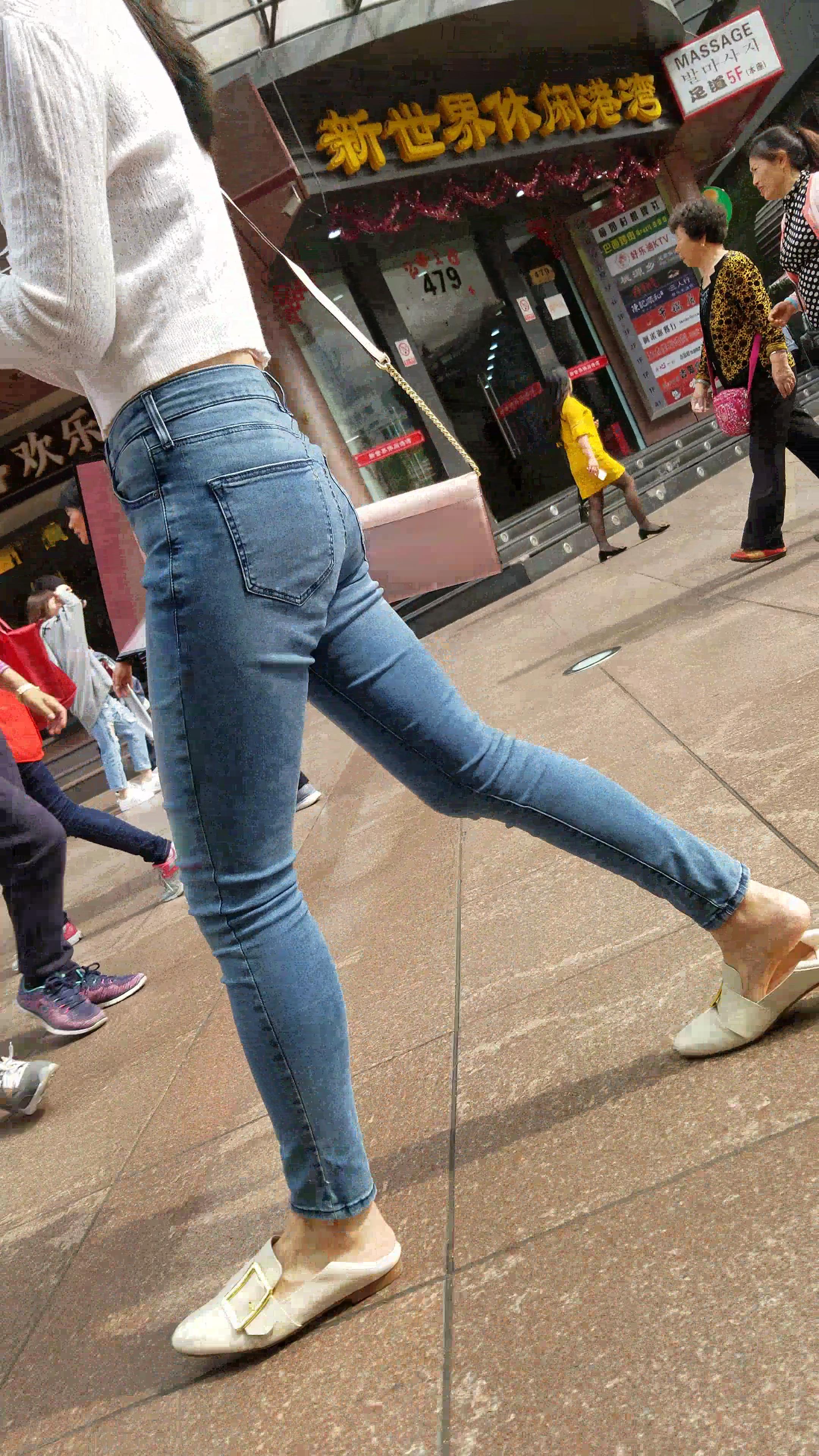 街拍白衣蓝色牛仔裤小清新美女姐姐 编号3198