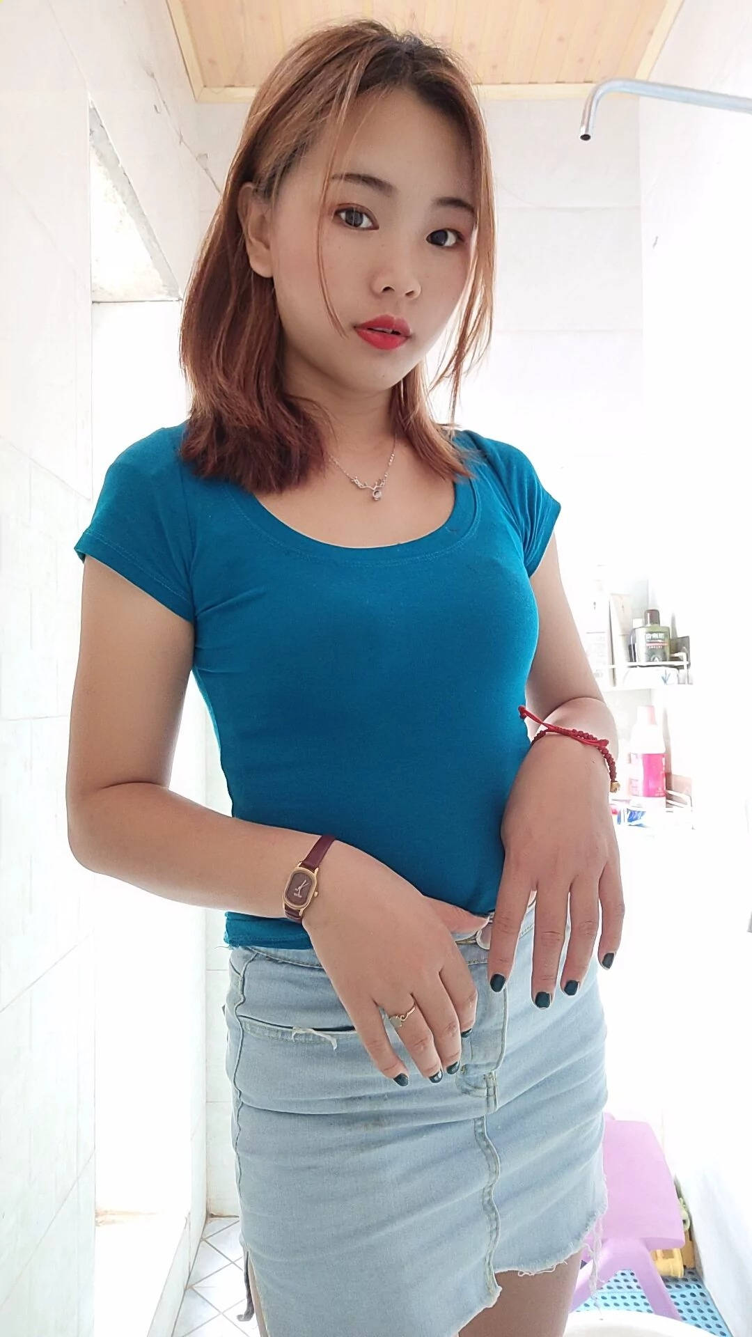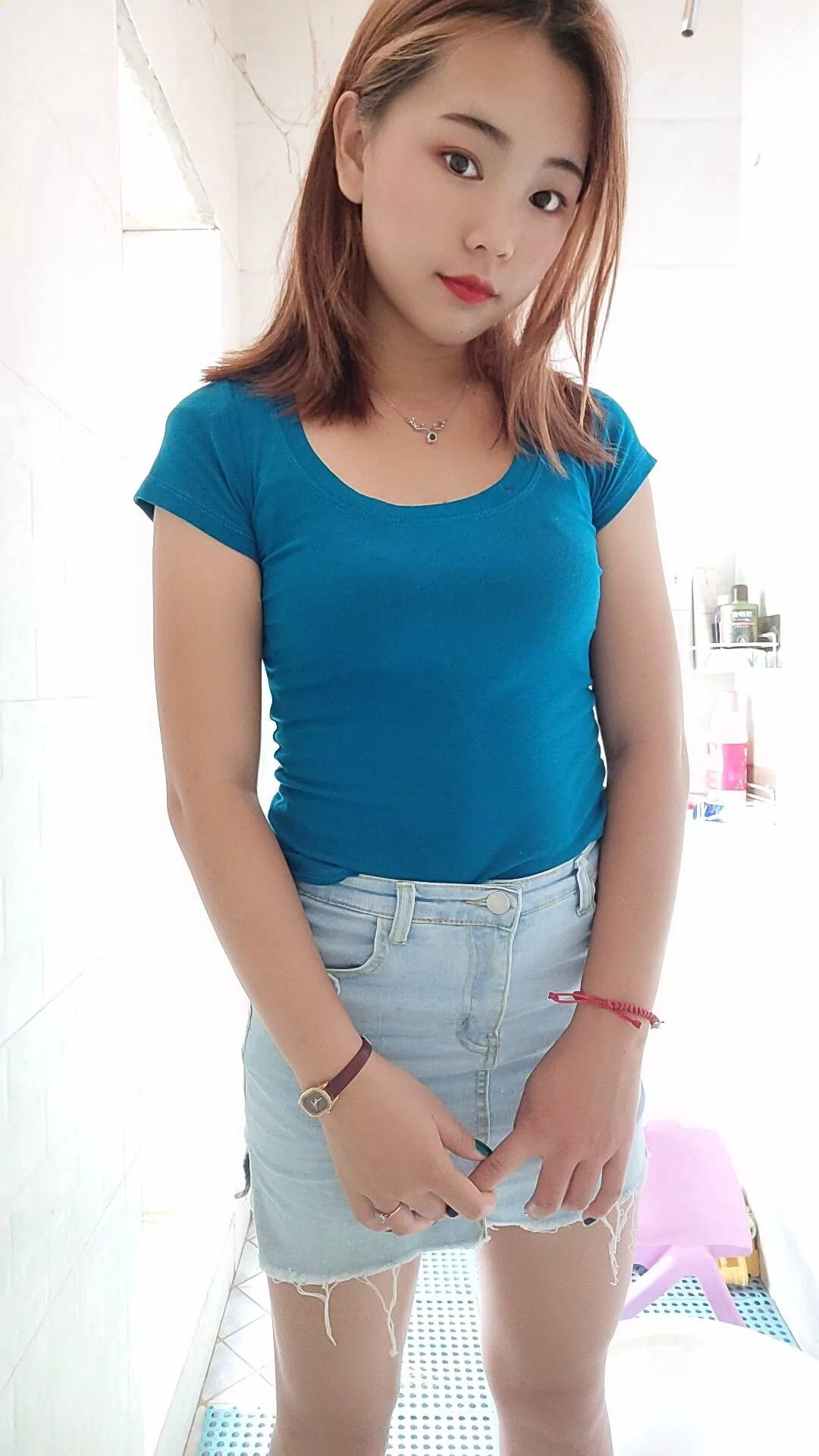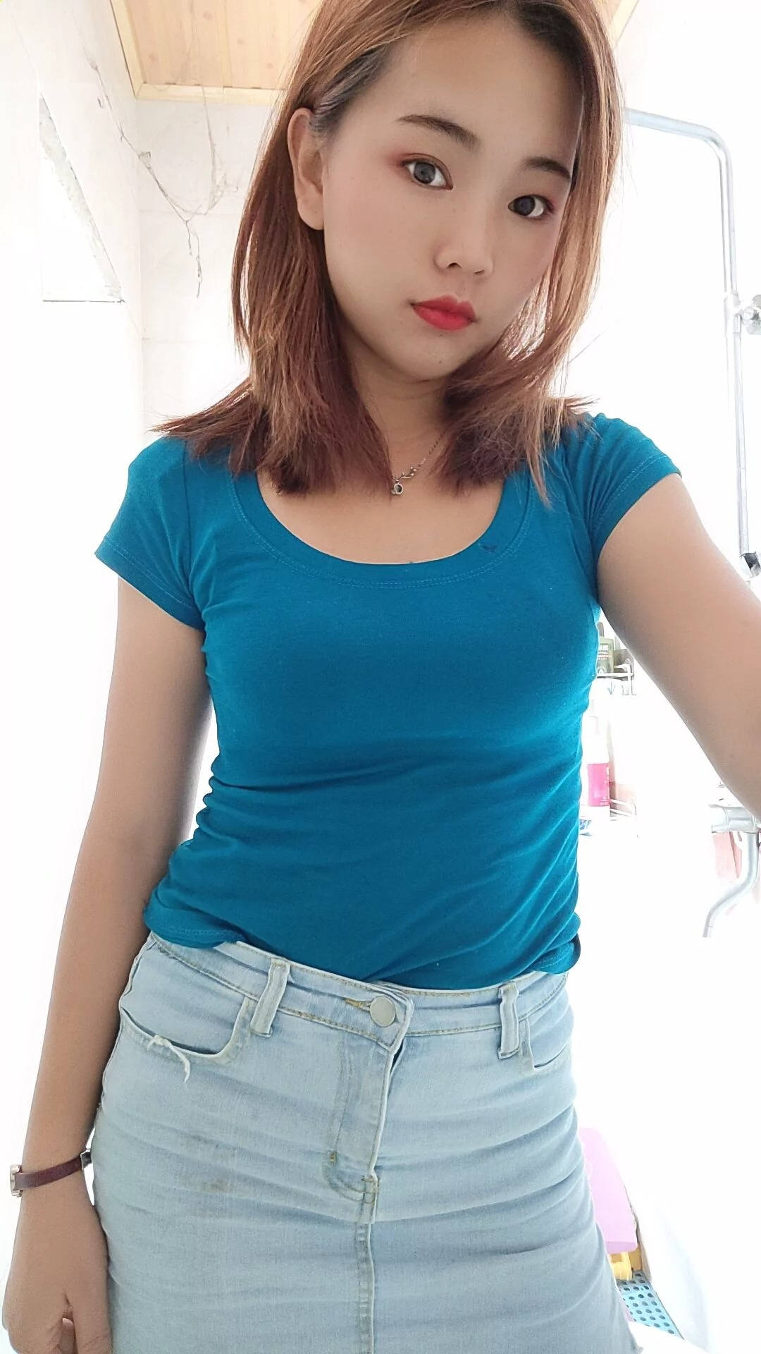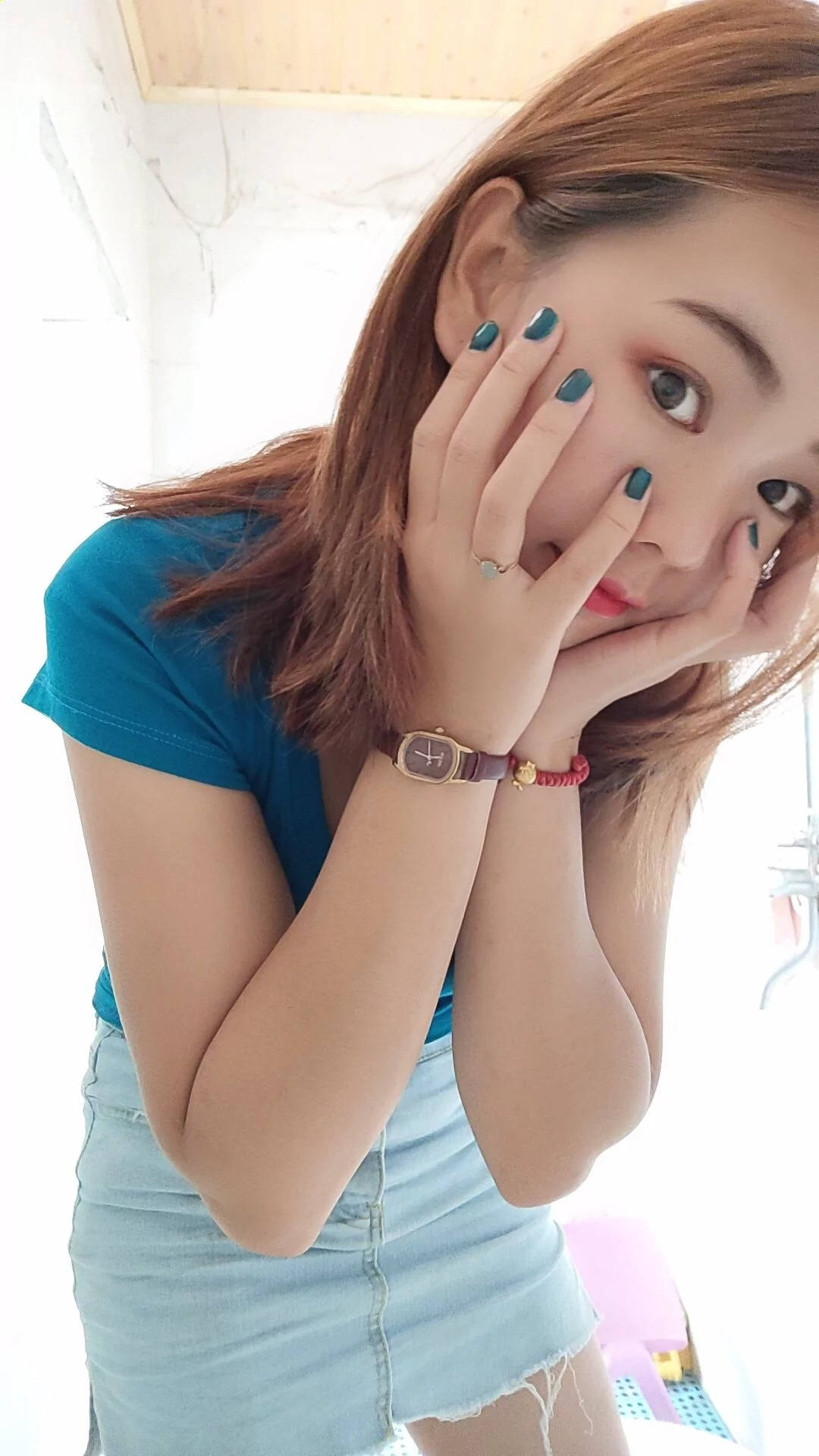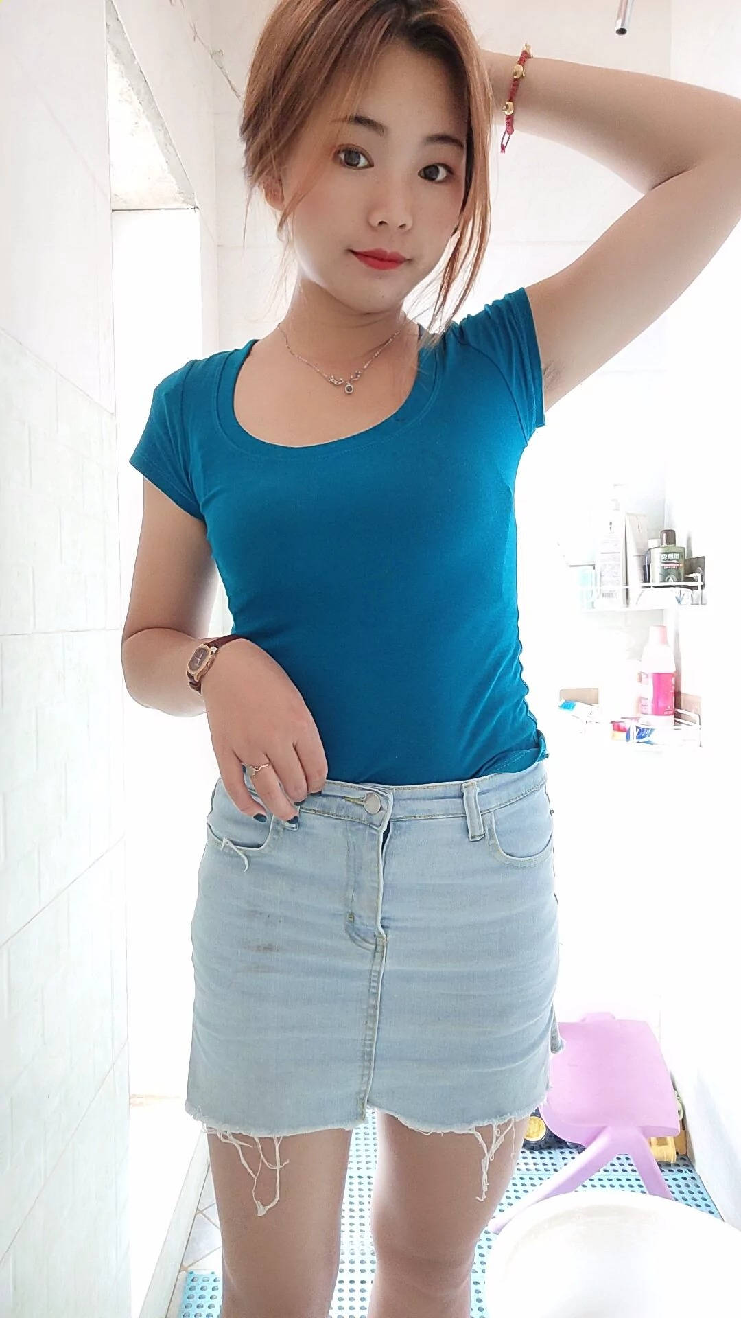 街拍高腰牛仔短裤前凸后翘的半裸美女SN89