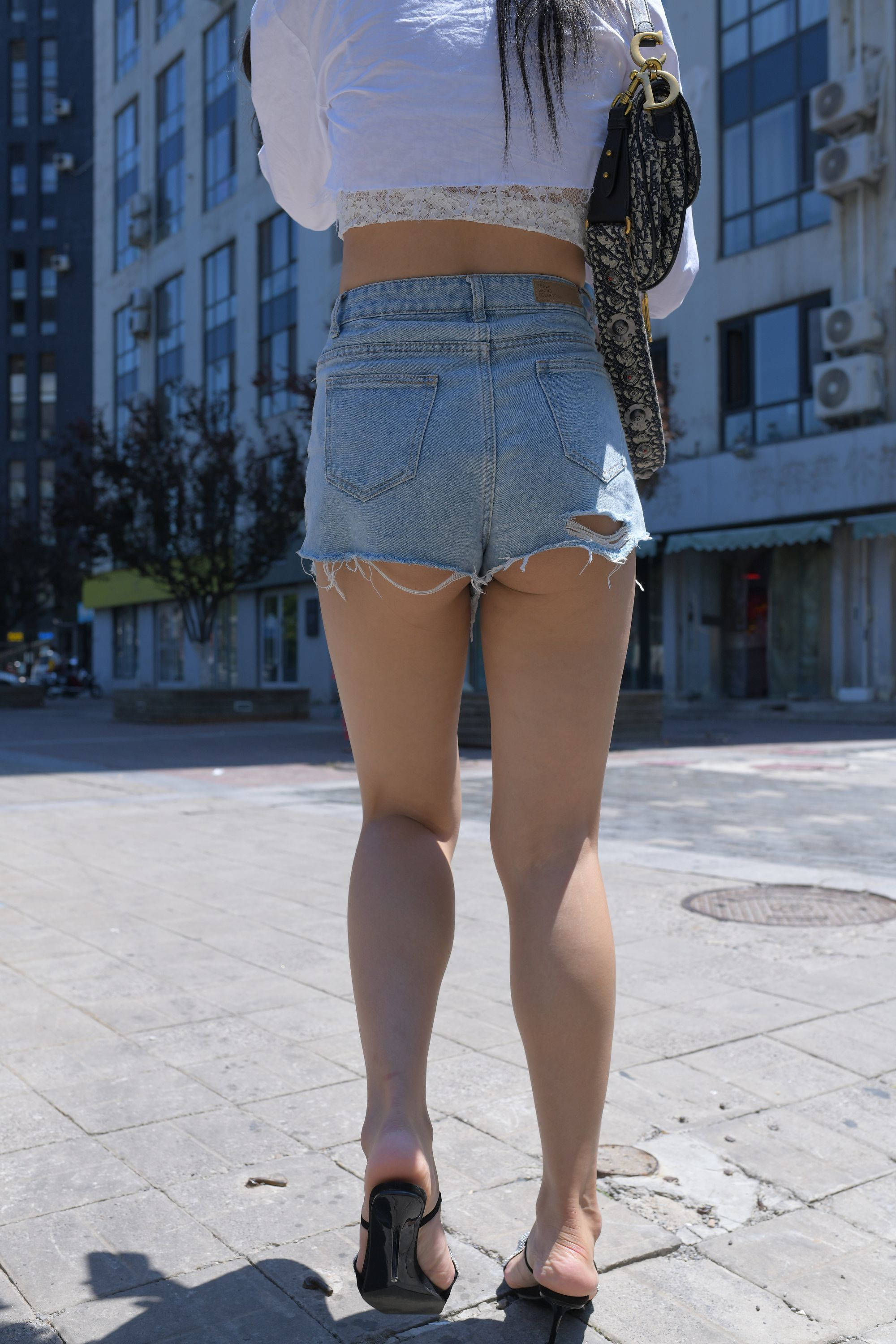 蓝色牛仔热裤长腿美女 编号1005