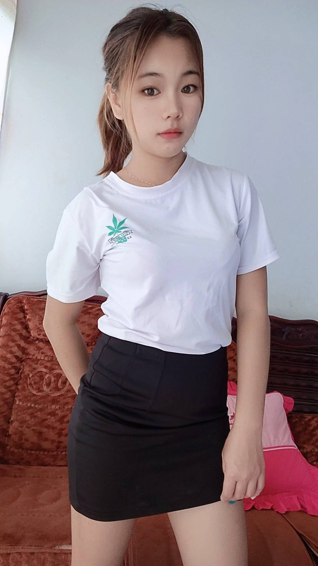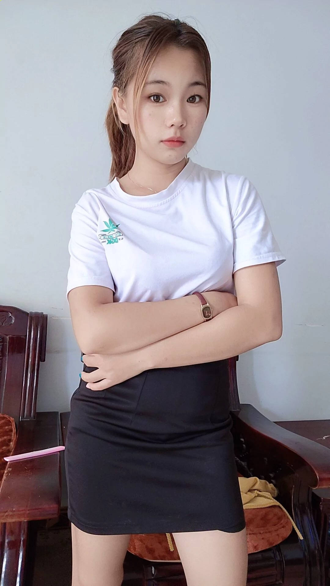 成人展黑色包臀短裙极品白长腿高跟长发美妞SN141