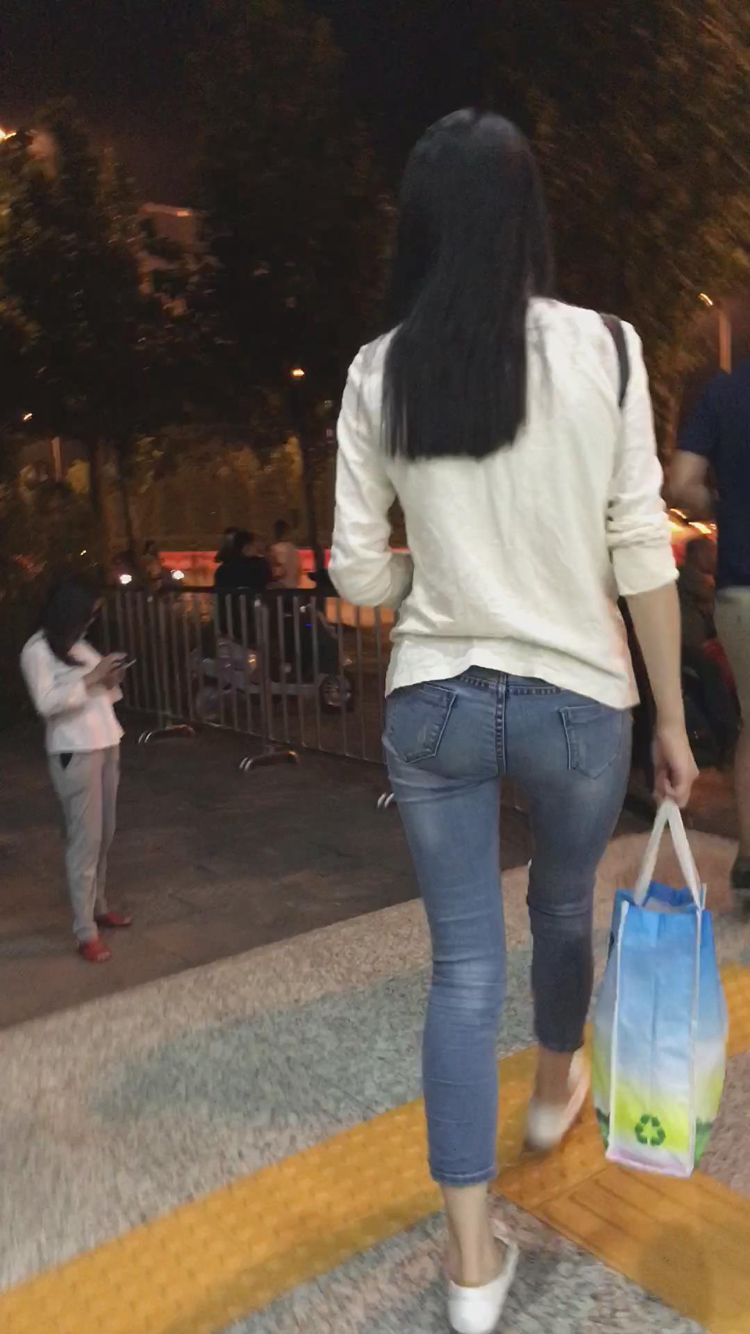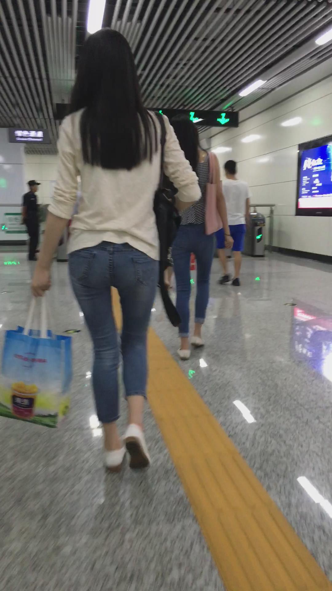 4k-刚下地铁的紧身蓝色牛仔裤小美女 编号3242