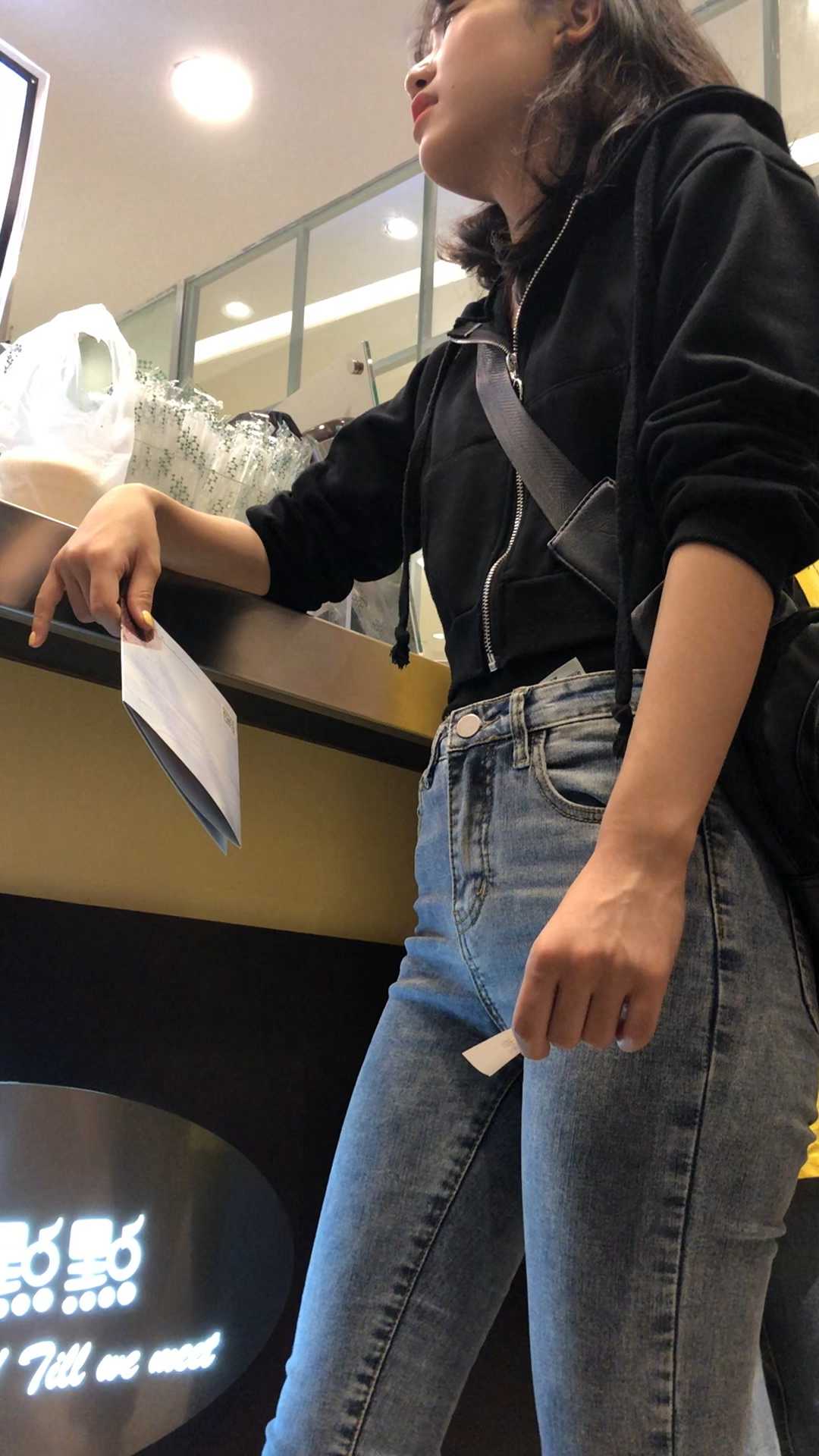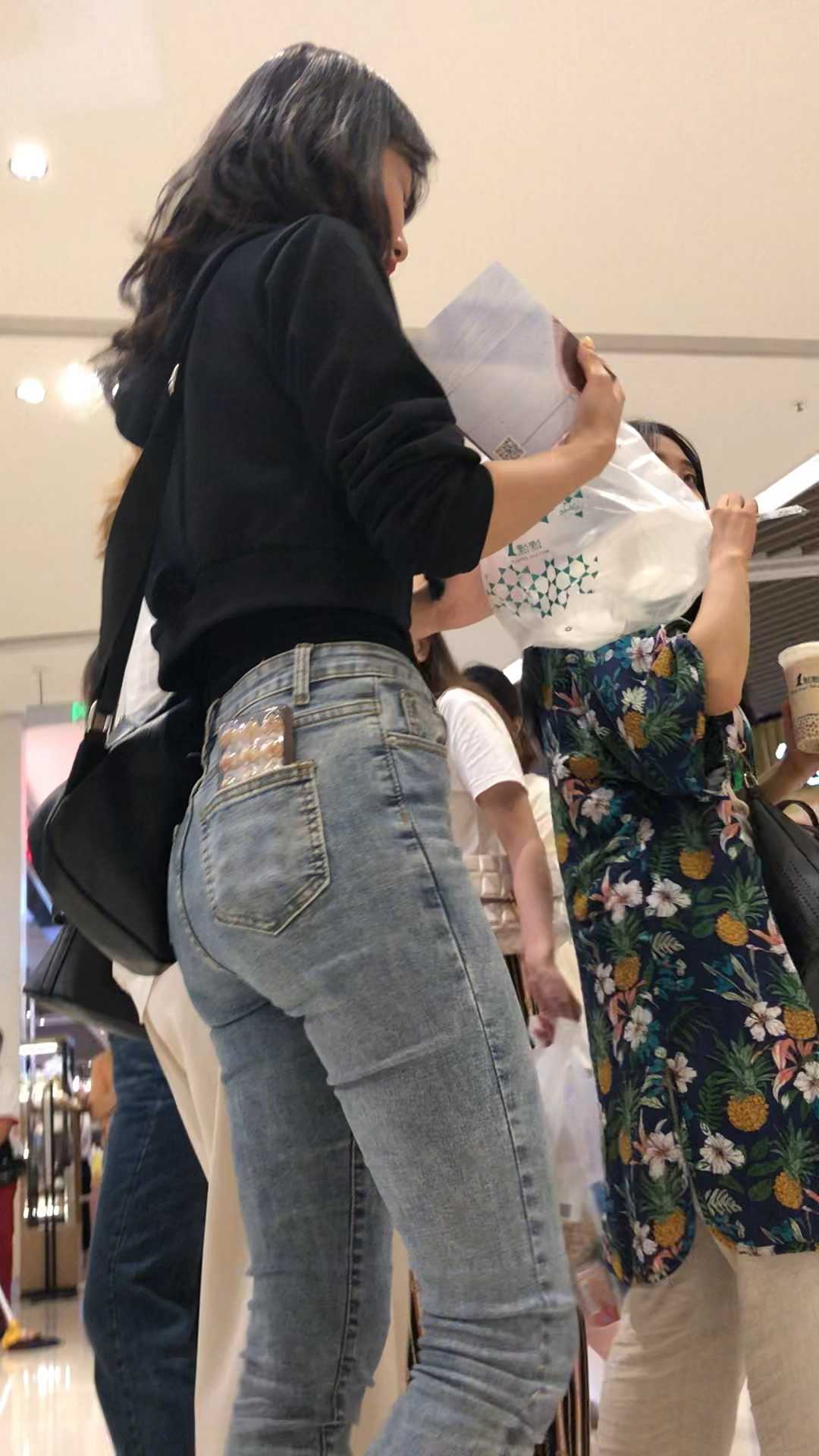 B1551商场紧身包臀牛仔小妹