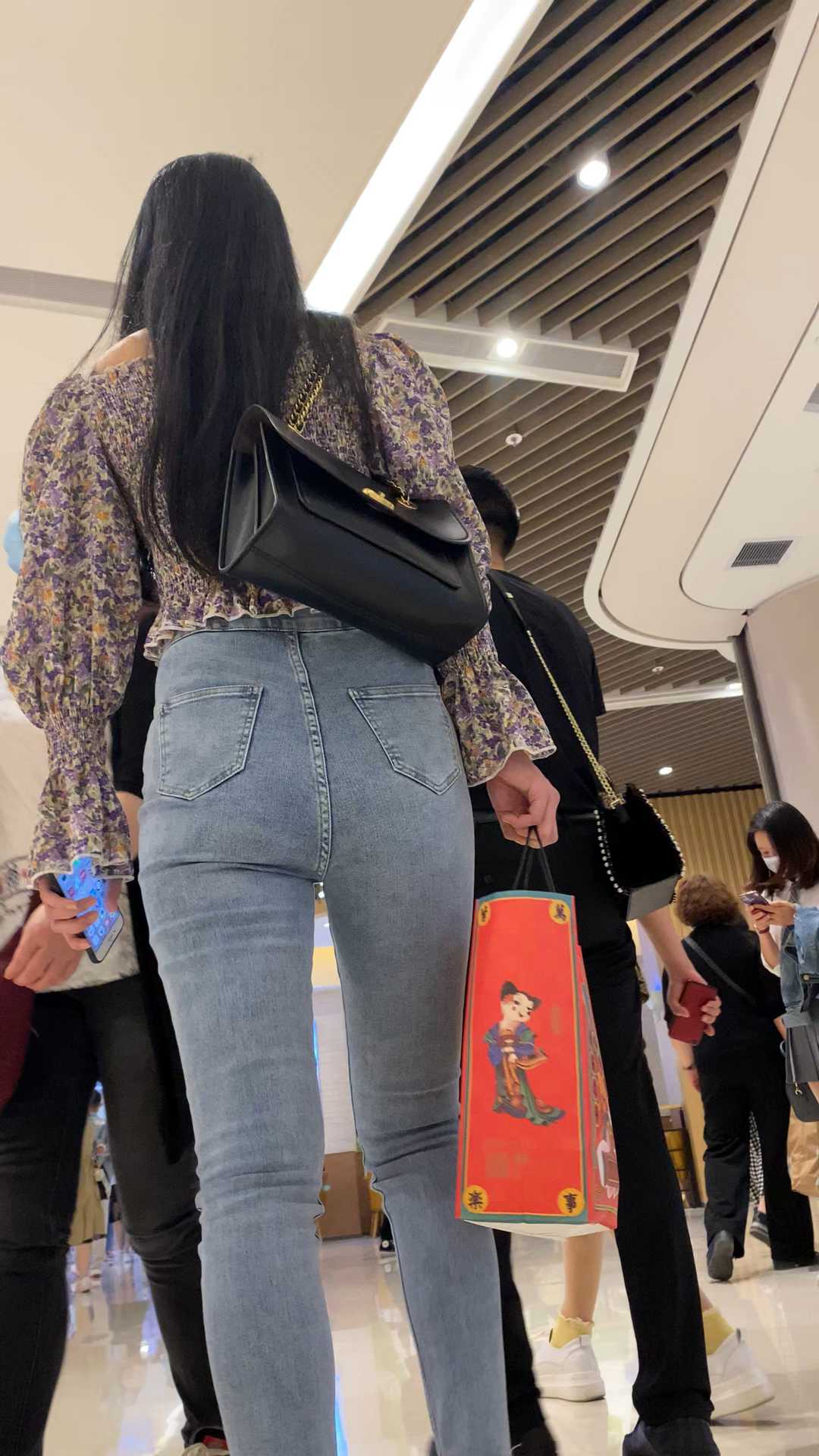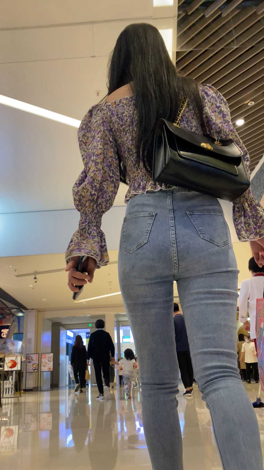 B1554商场紧身灰牛仔大宽臀妹子