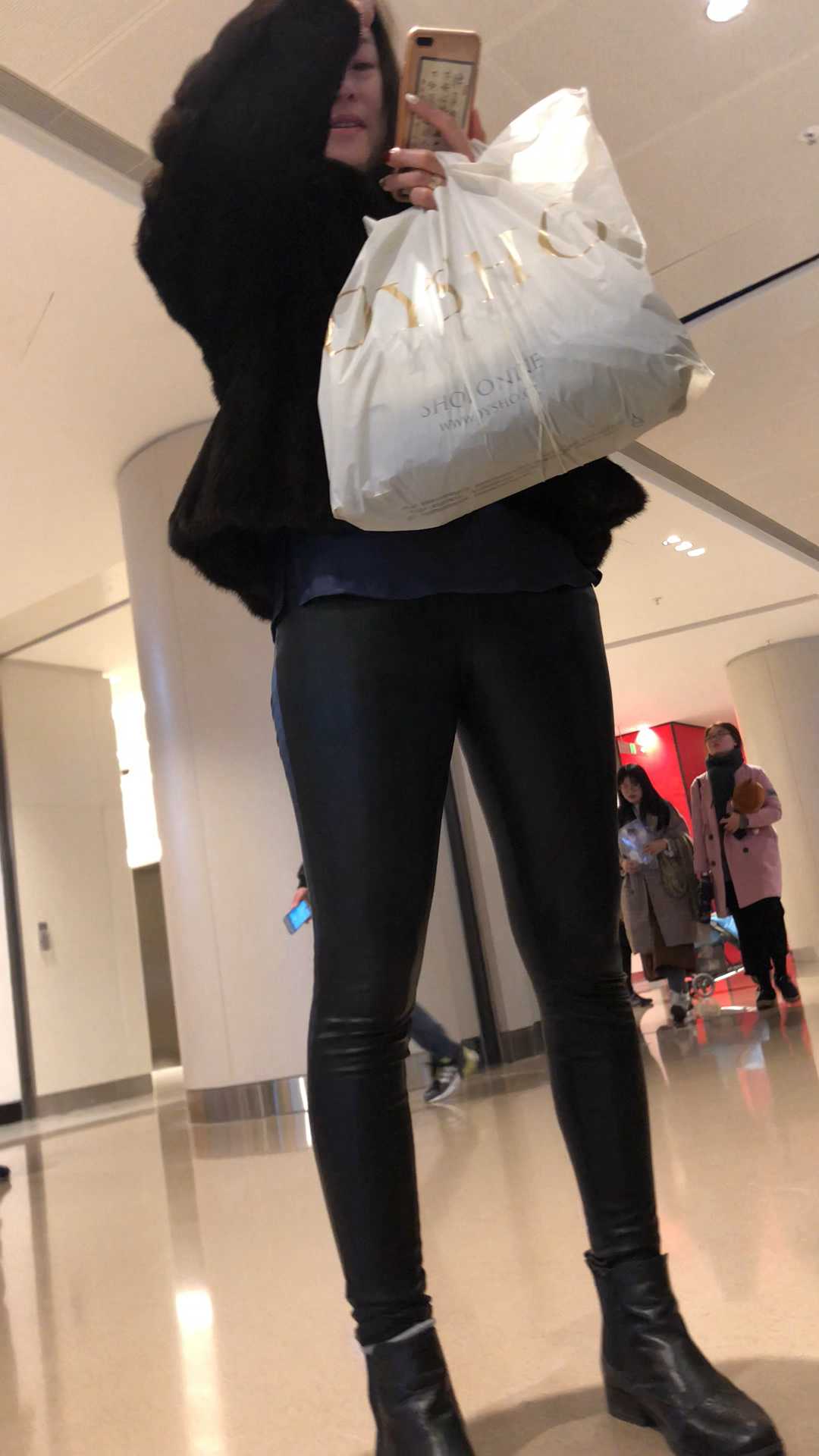 B1564商场紧身皮裤圆臀少妇