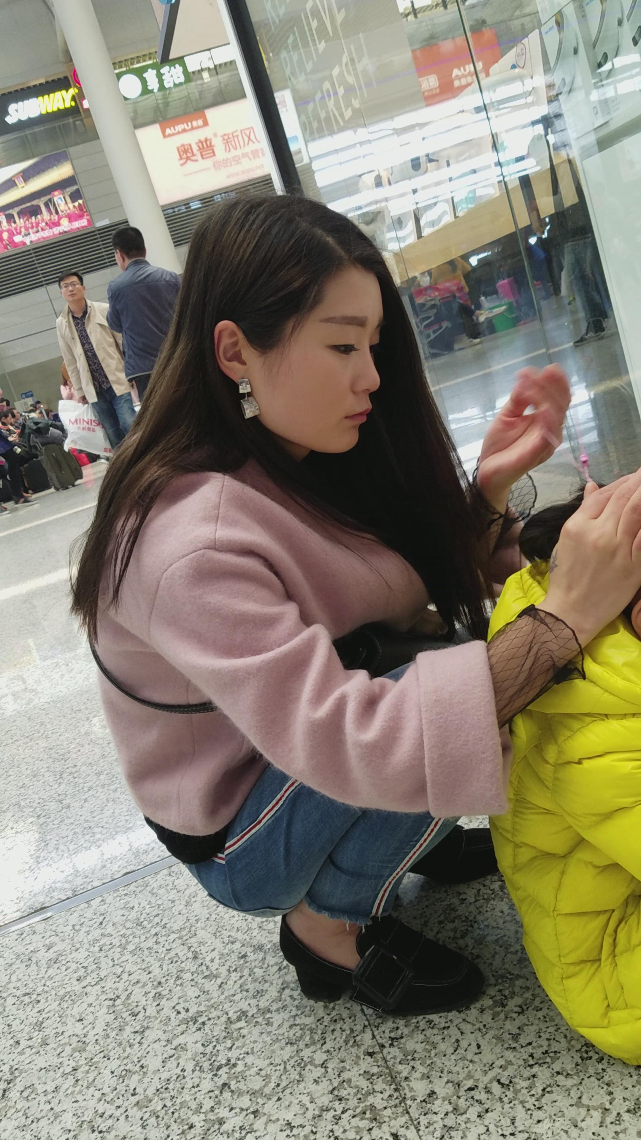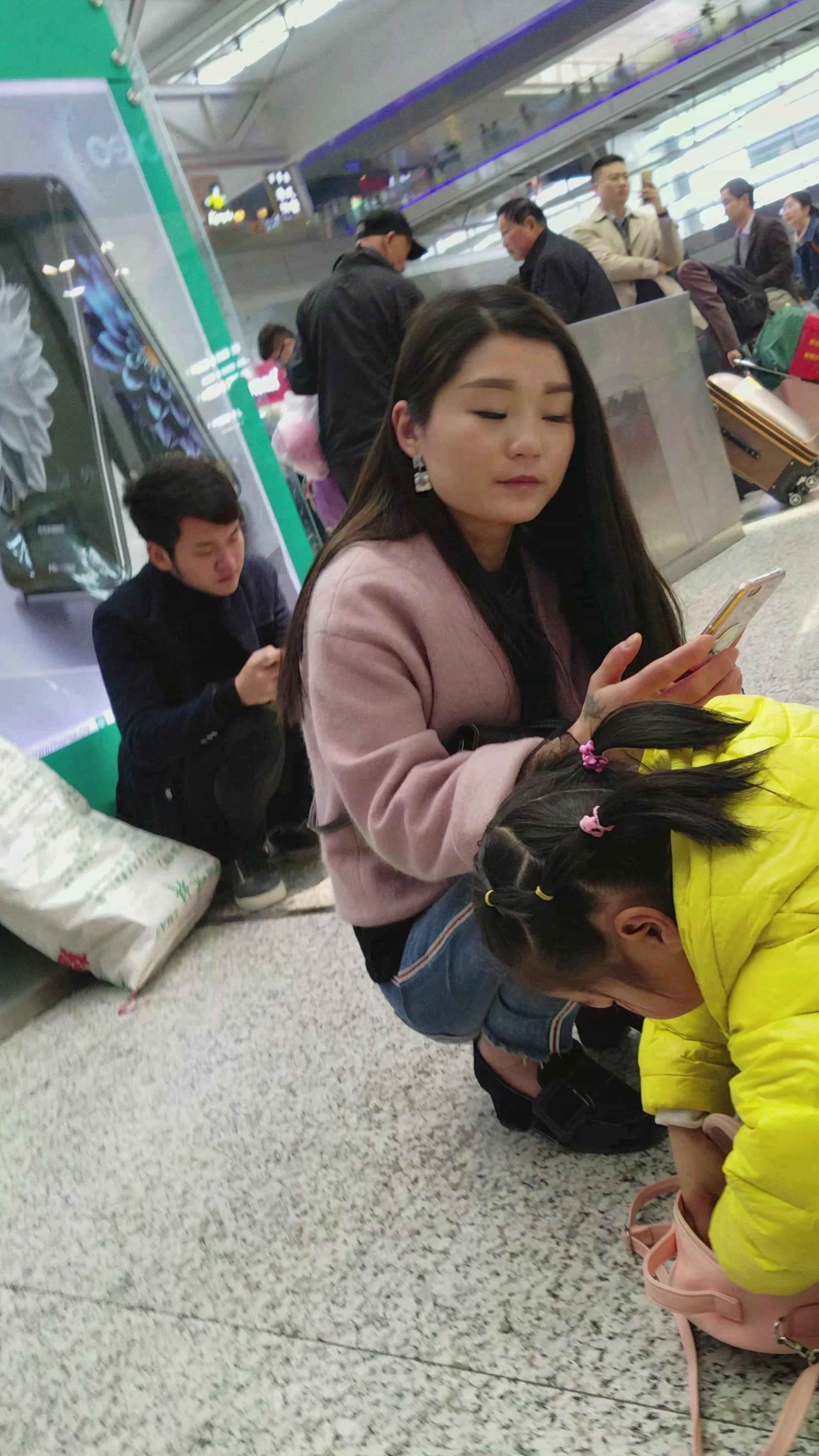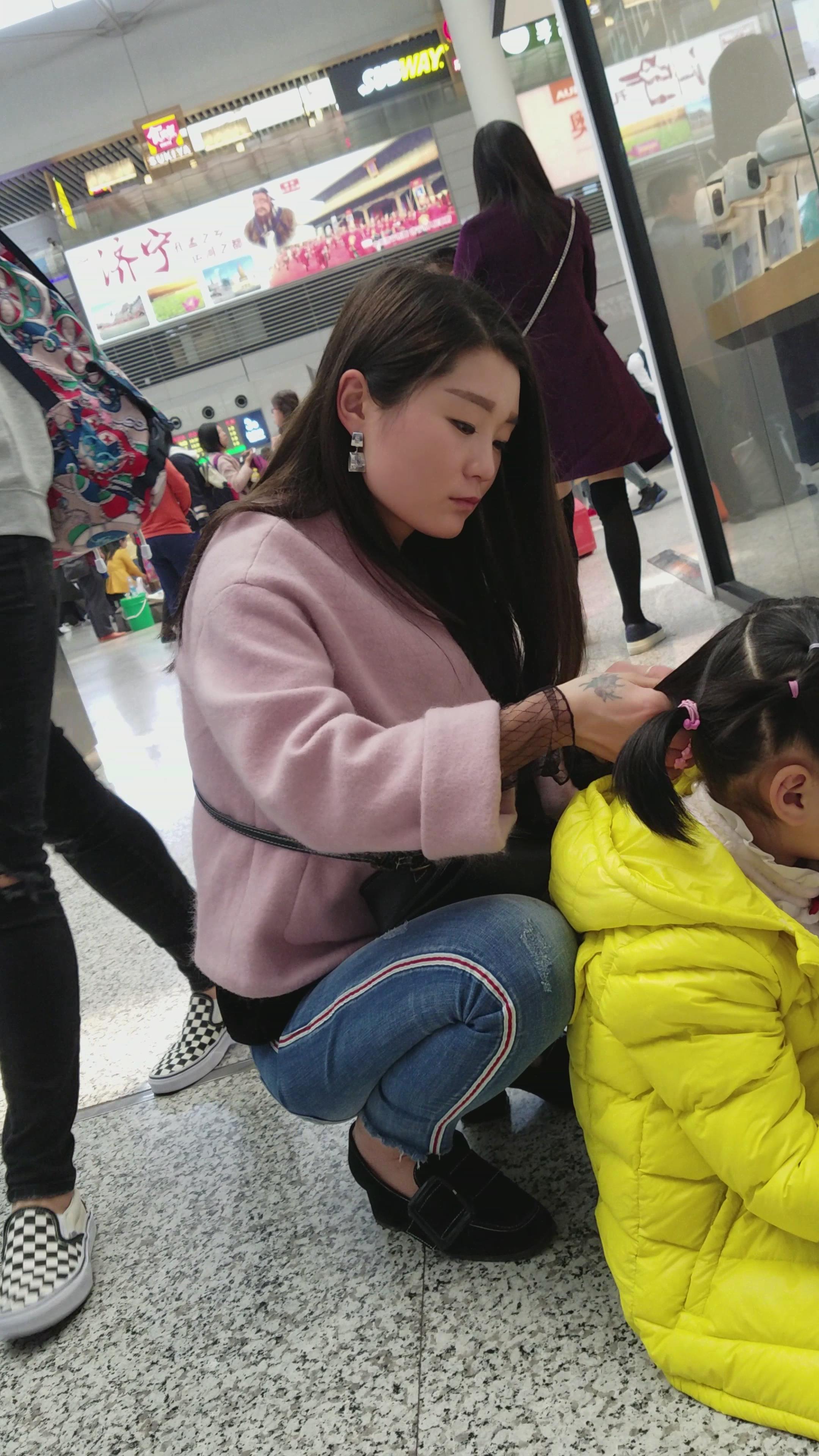4k-帮女儿扎头发的紧身牛仔裤少妇 编号3263