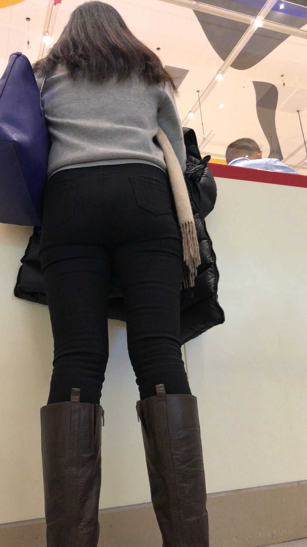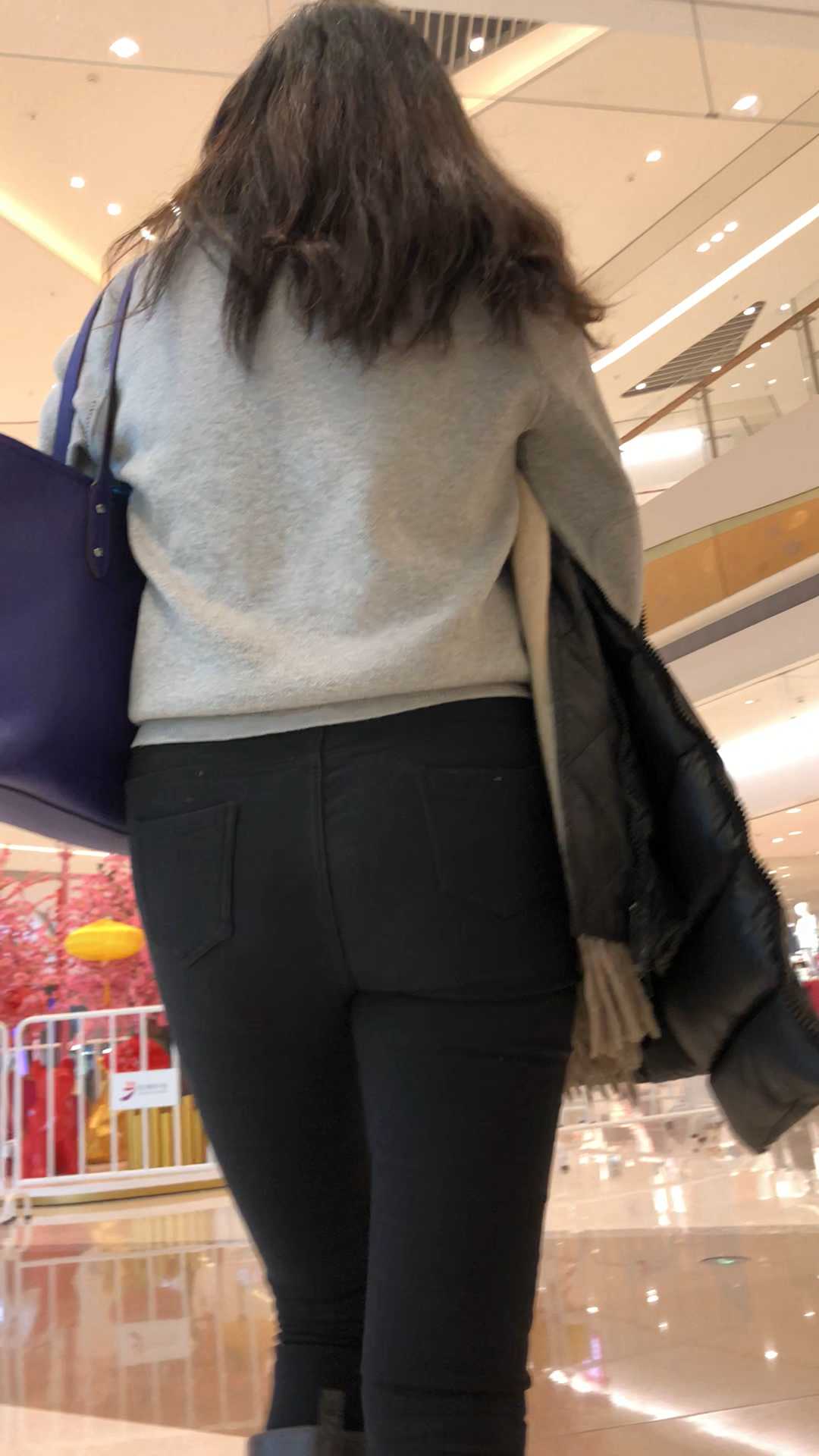 B1685打底裤大宽臀长发美女