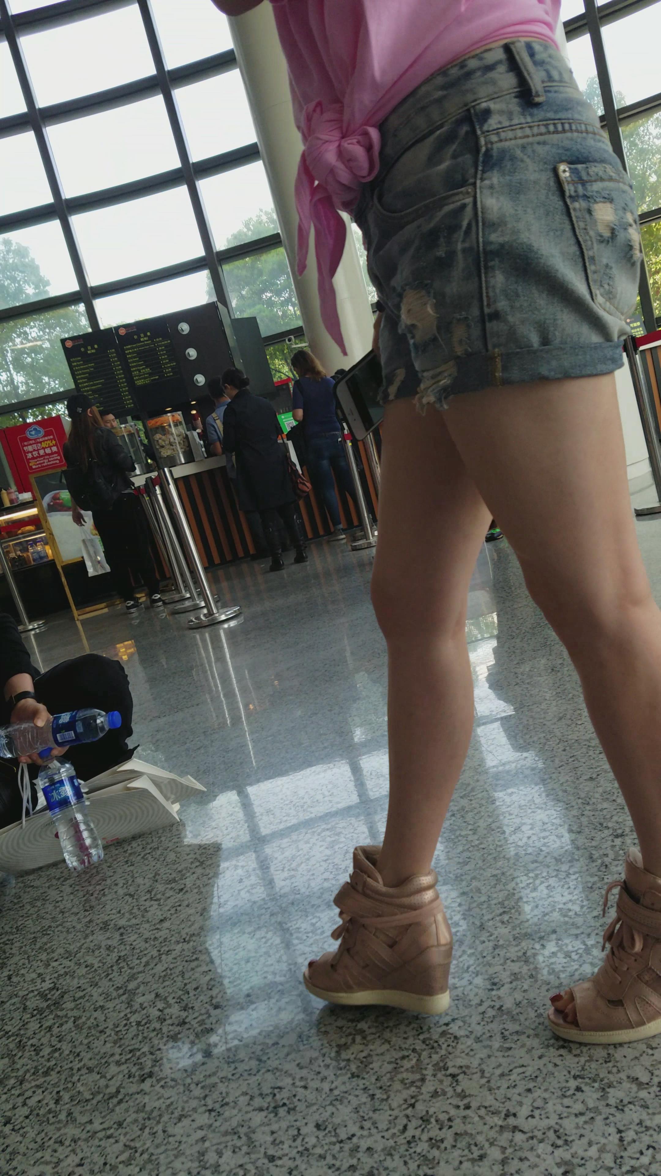 4k-粉色T恤衫牛仔热裤白皙美腿姐姐 编号3264