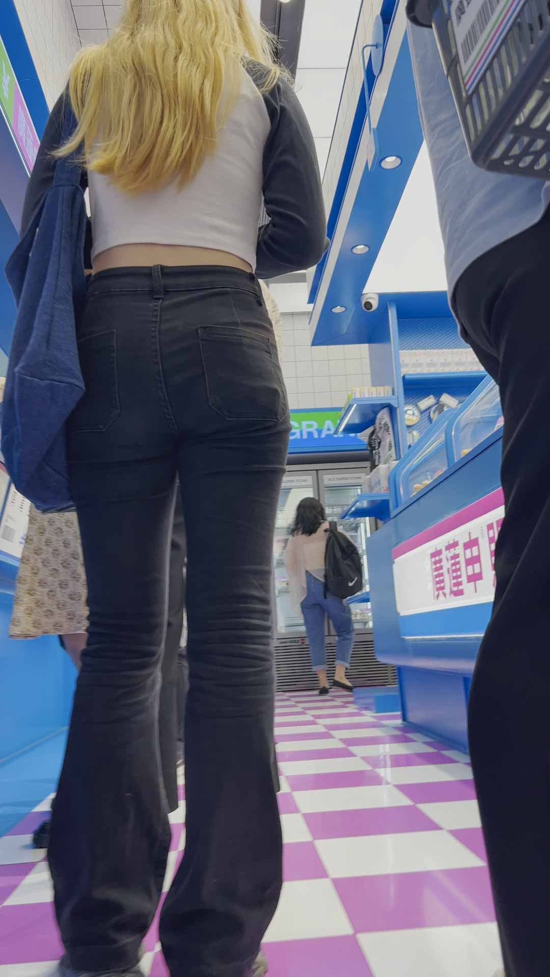 B943包臀黑裤紧身长发少女