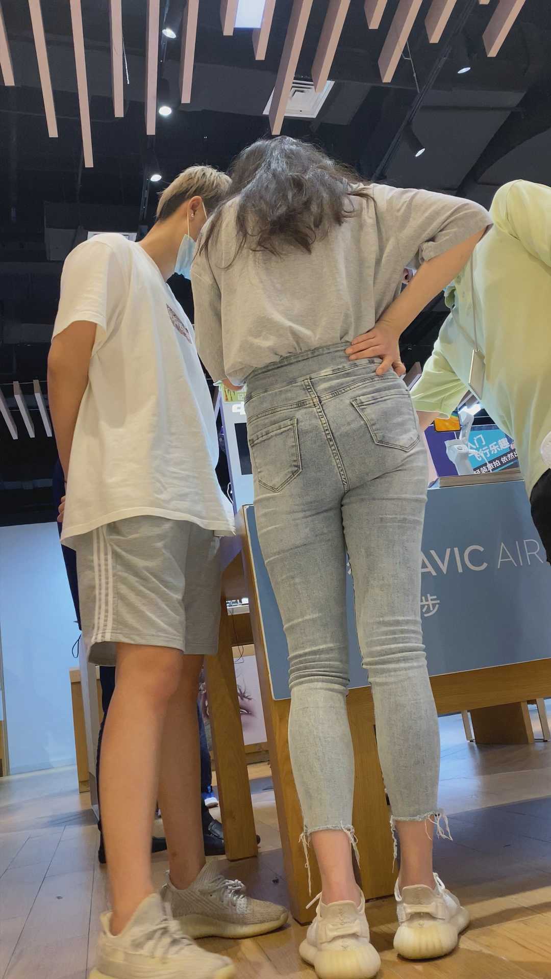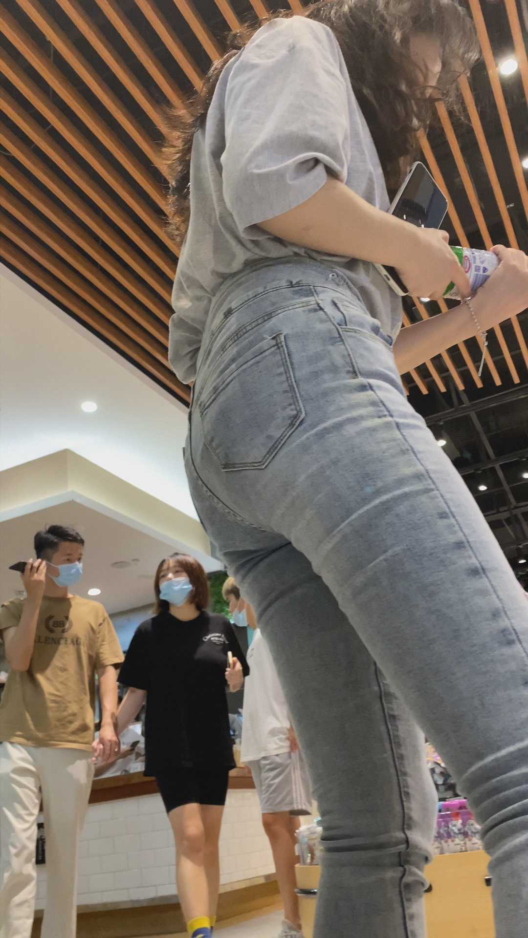 B963商场灰牛仔裤紧臀少女