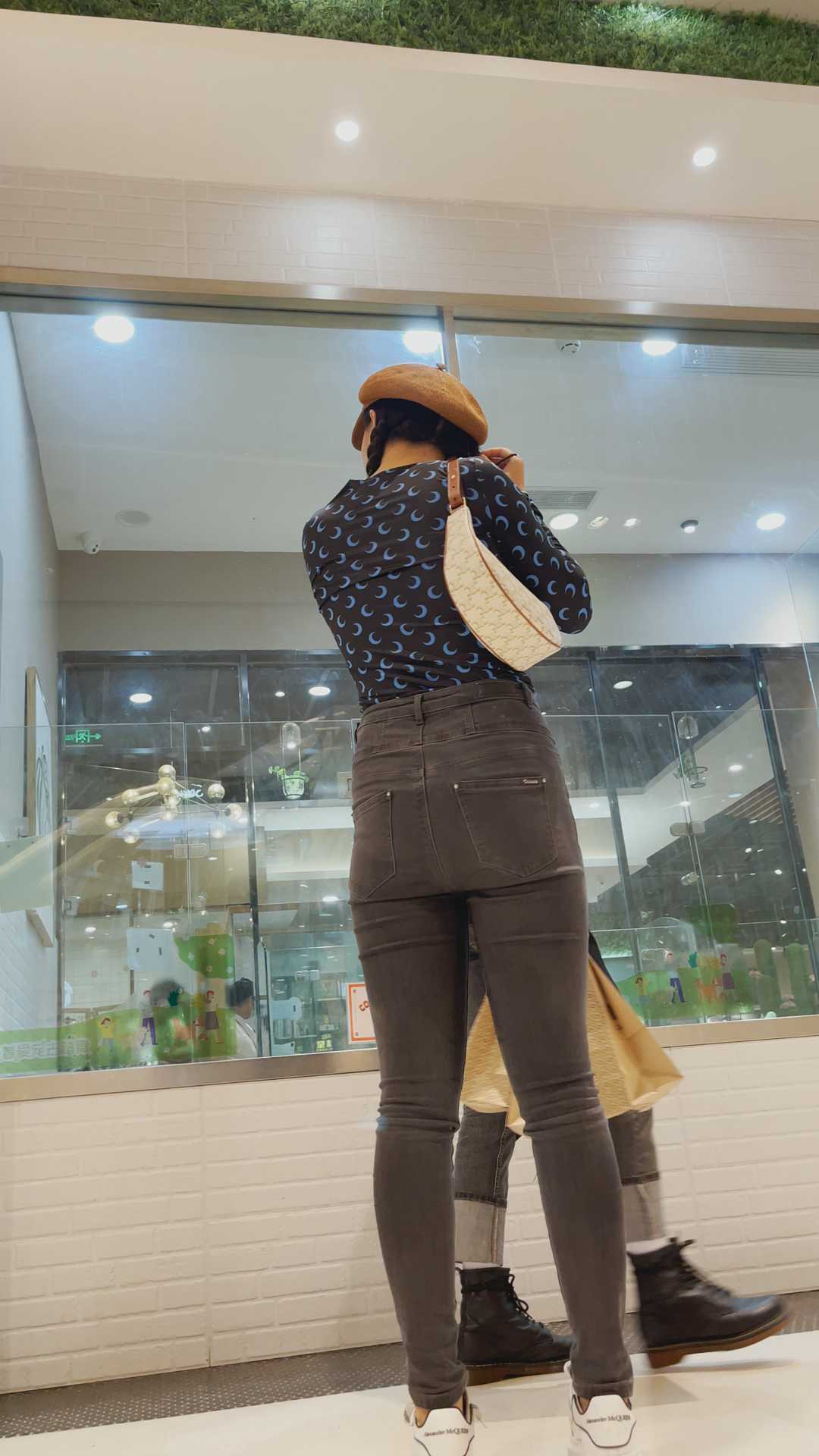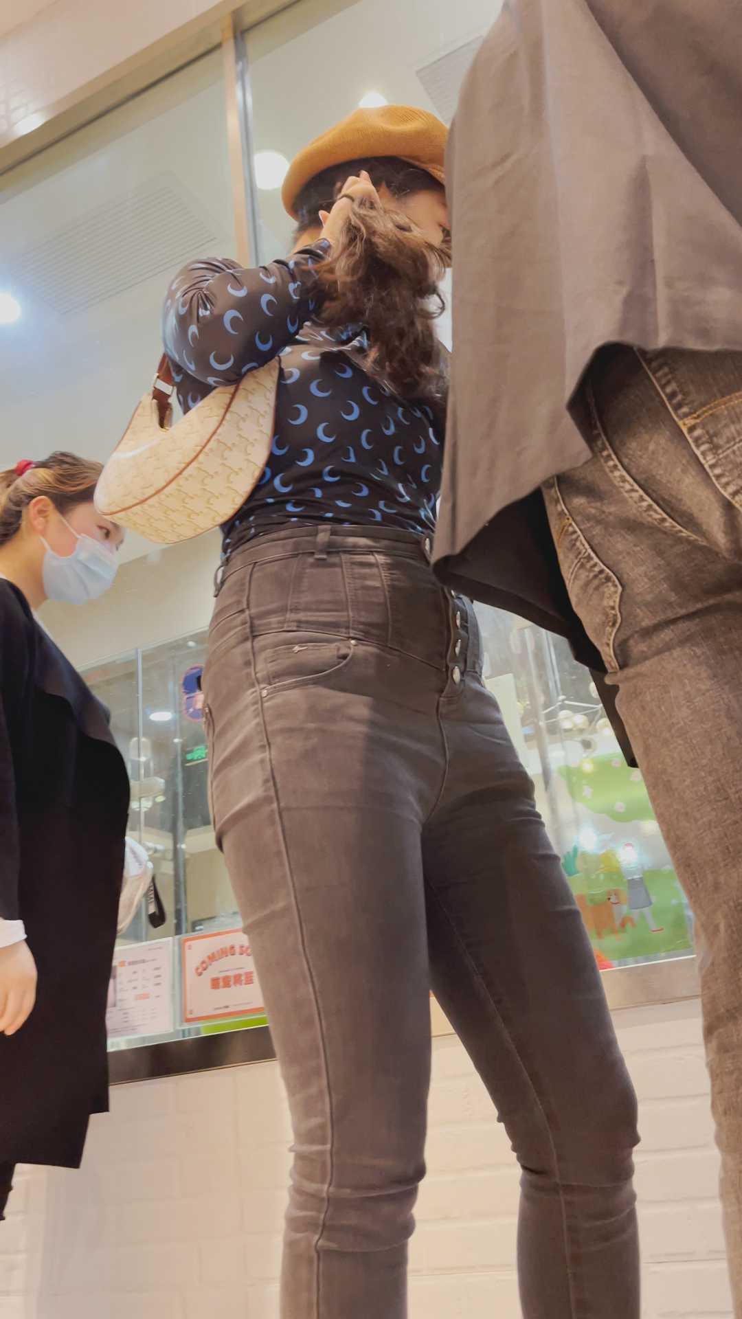 B980商场紧身灰牛仔金三角妹子