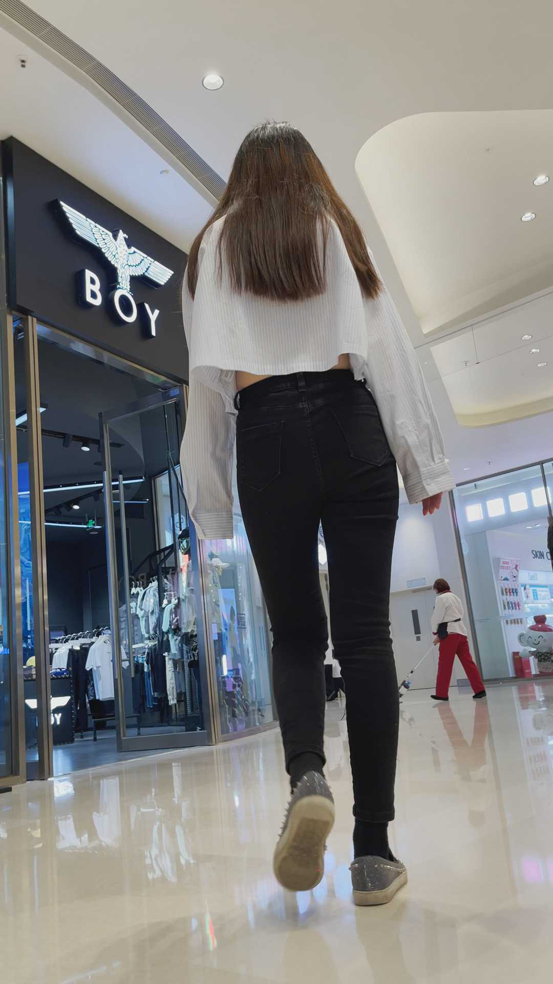 B1002商场紧身黑裤小妹刚大屁孩