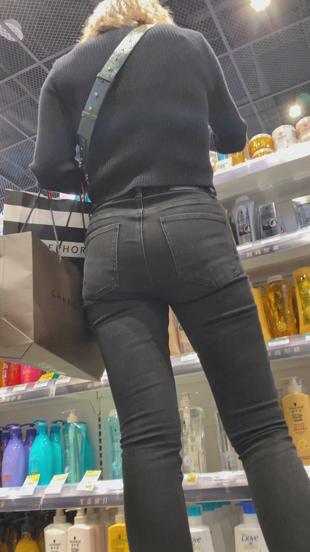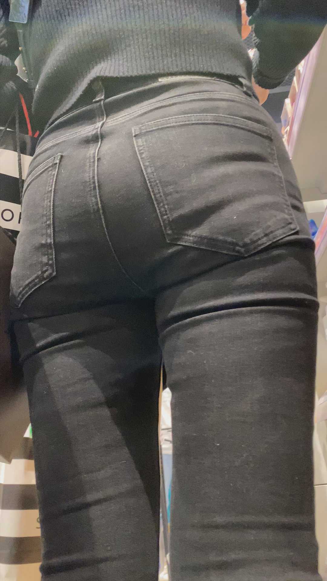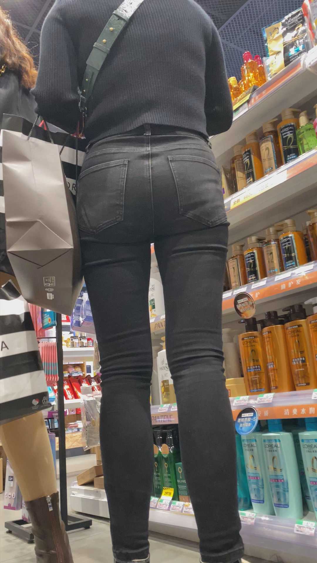 B1005商场翘大宽臀紧内痕黑裤少女