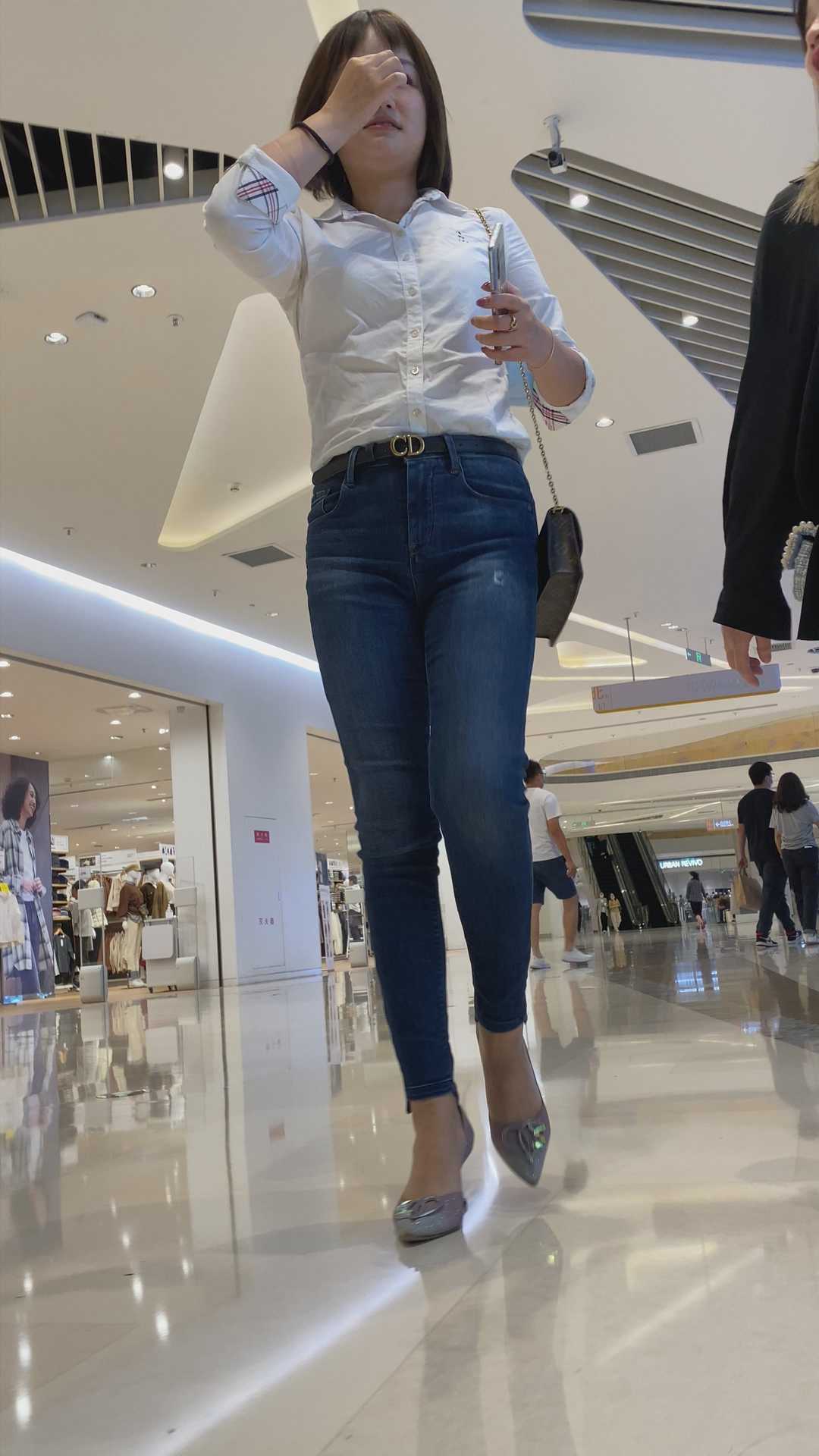 B1021商场高跟蓝牛紧臀小少妇