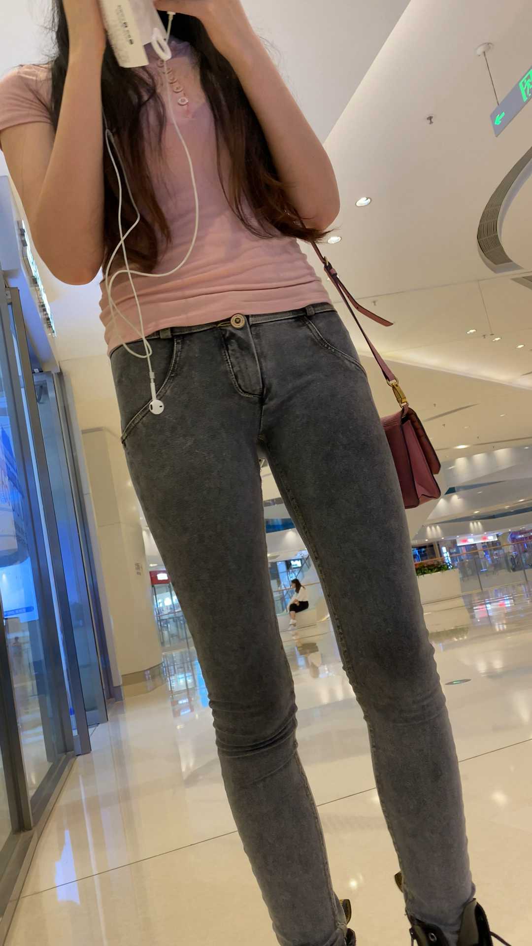 B1154灰牛仔紧翘臀长发小姐姐