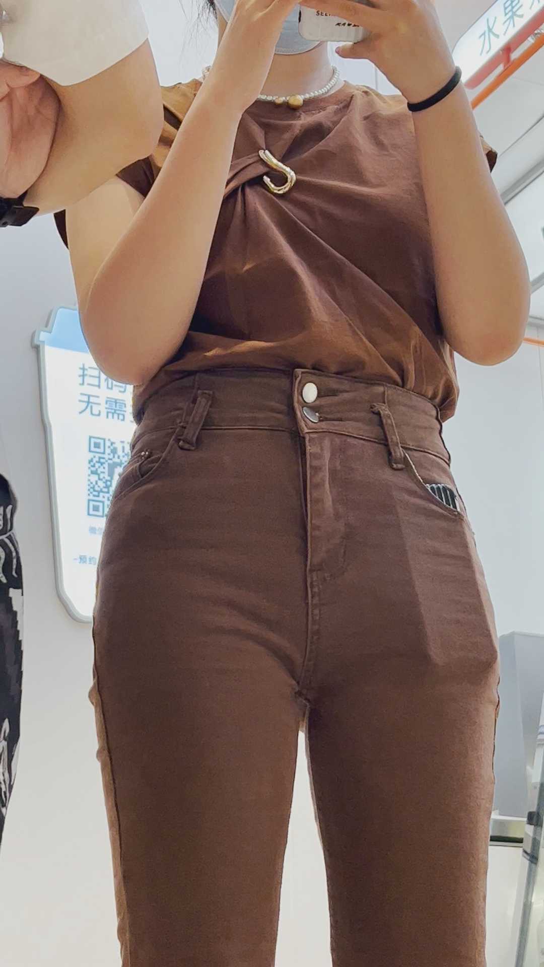 B1184高腰布裤丰臀小姐姐