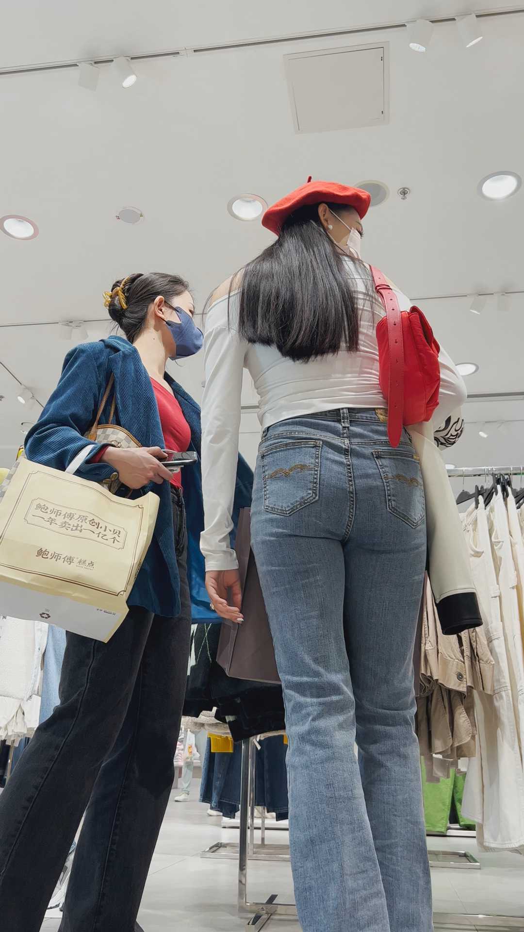 B1189服装店包臀灰牛仔少妇