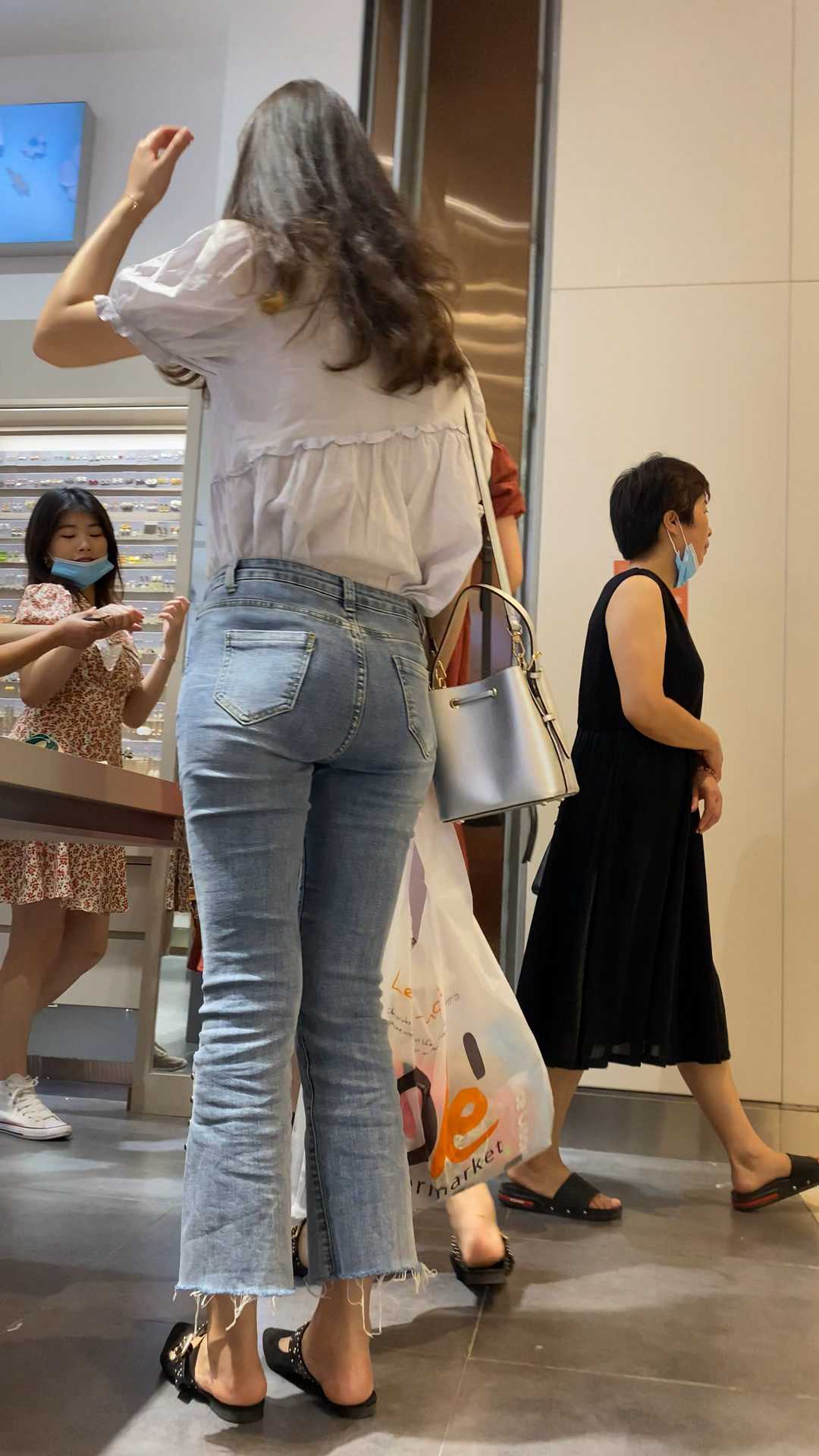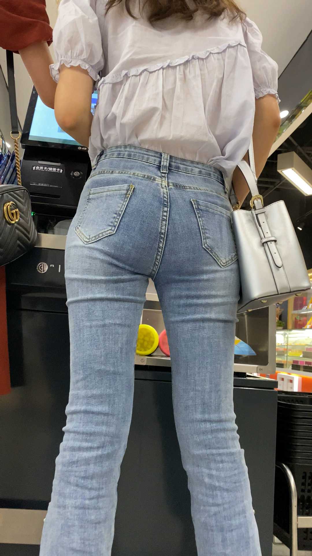 B1252紧身包臀牛仔翘臀美女小姐姐