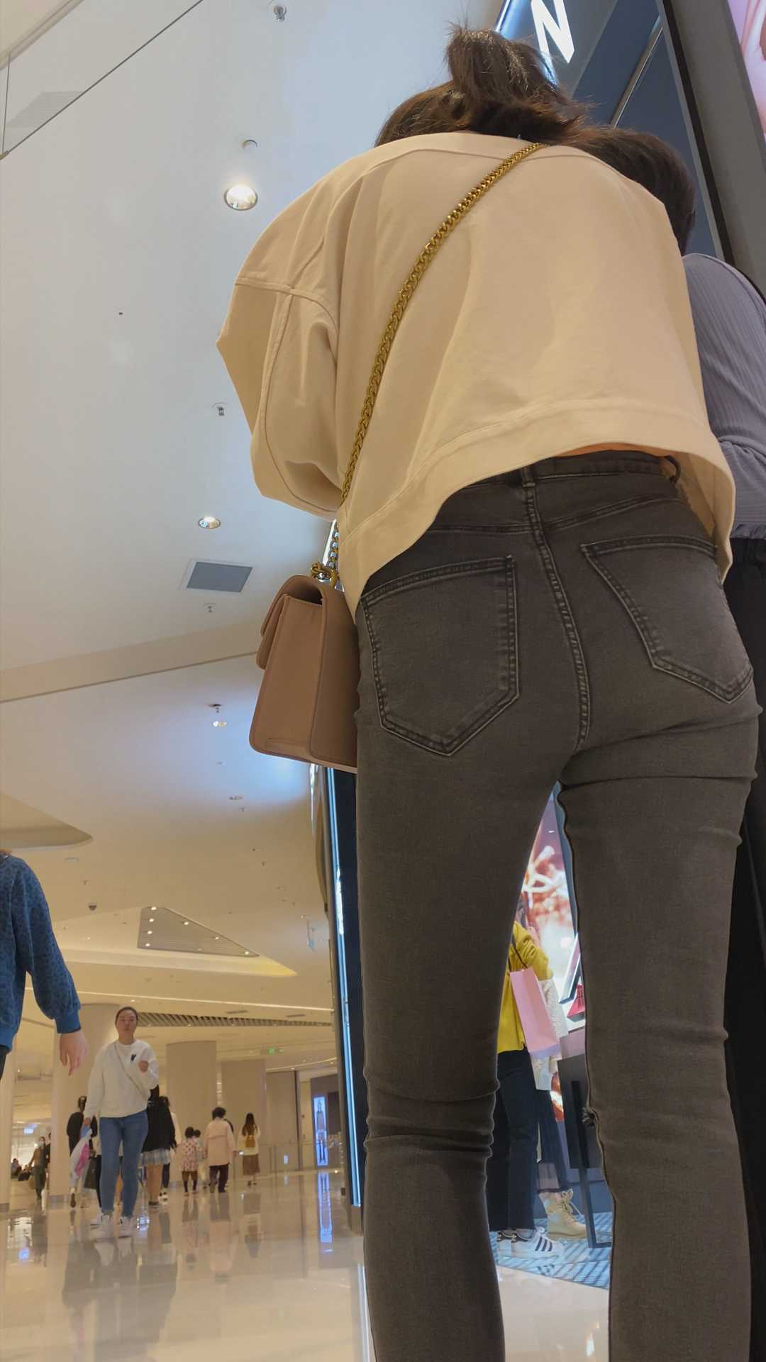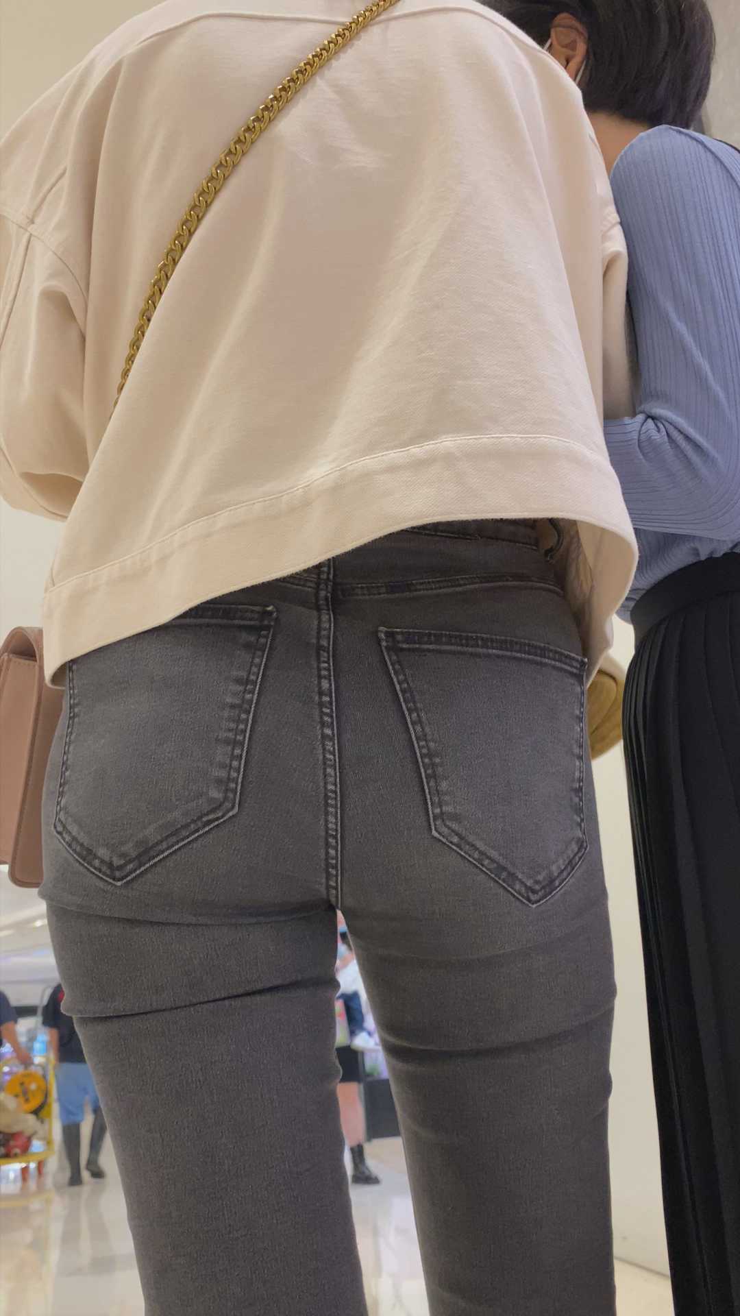 B1265紧身灰牛仔宽臀妹子