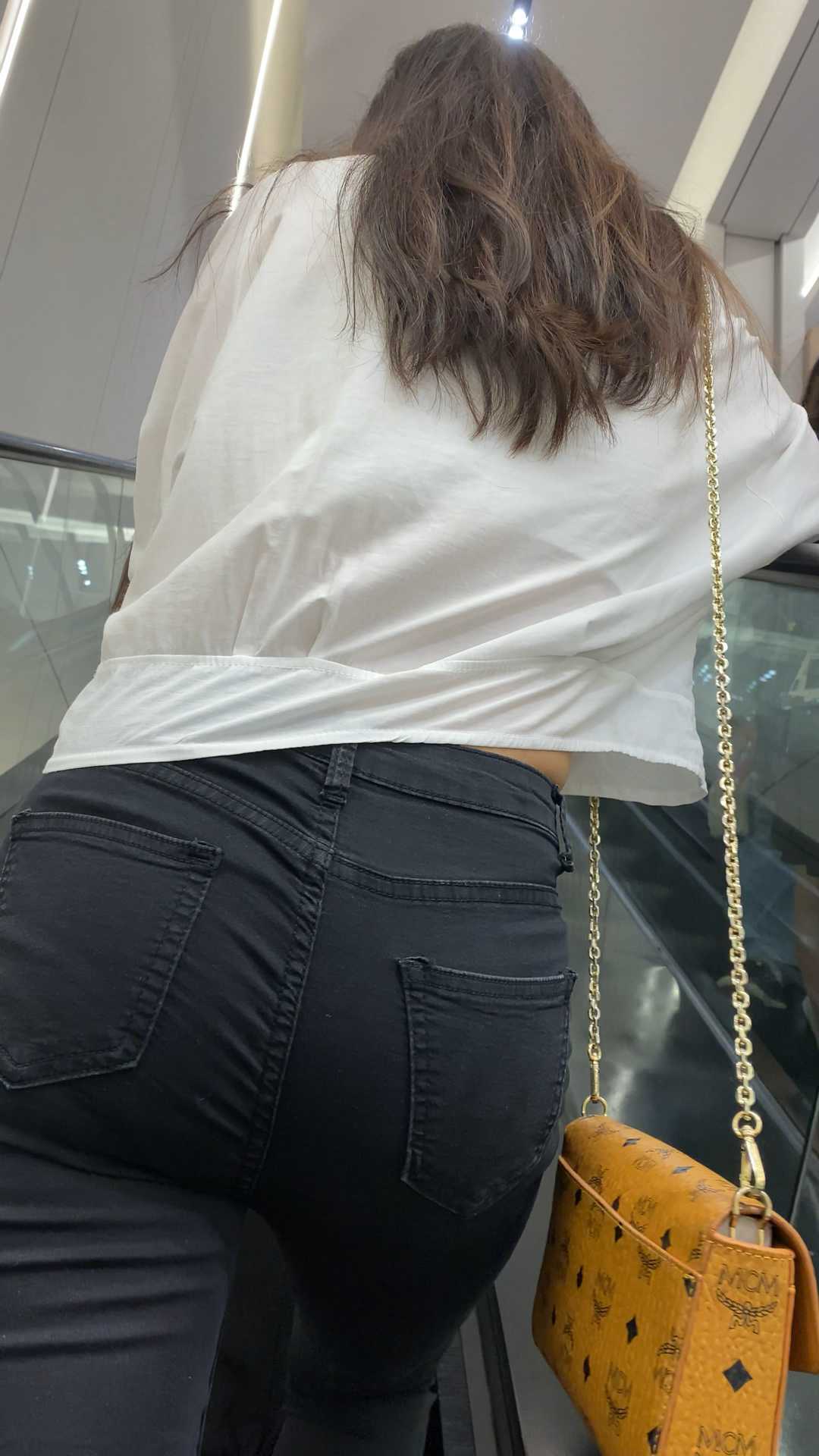 B1320紧身黑裤紧臀长发小姐姐