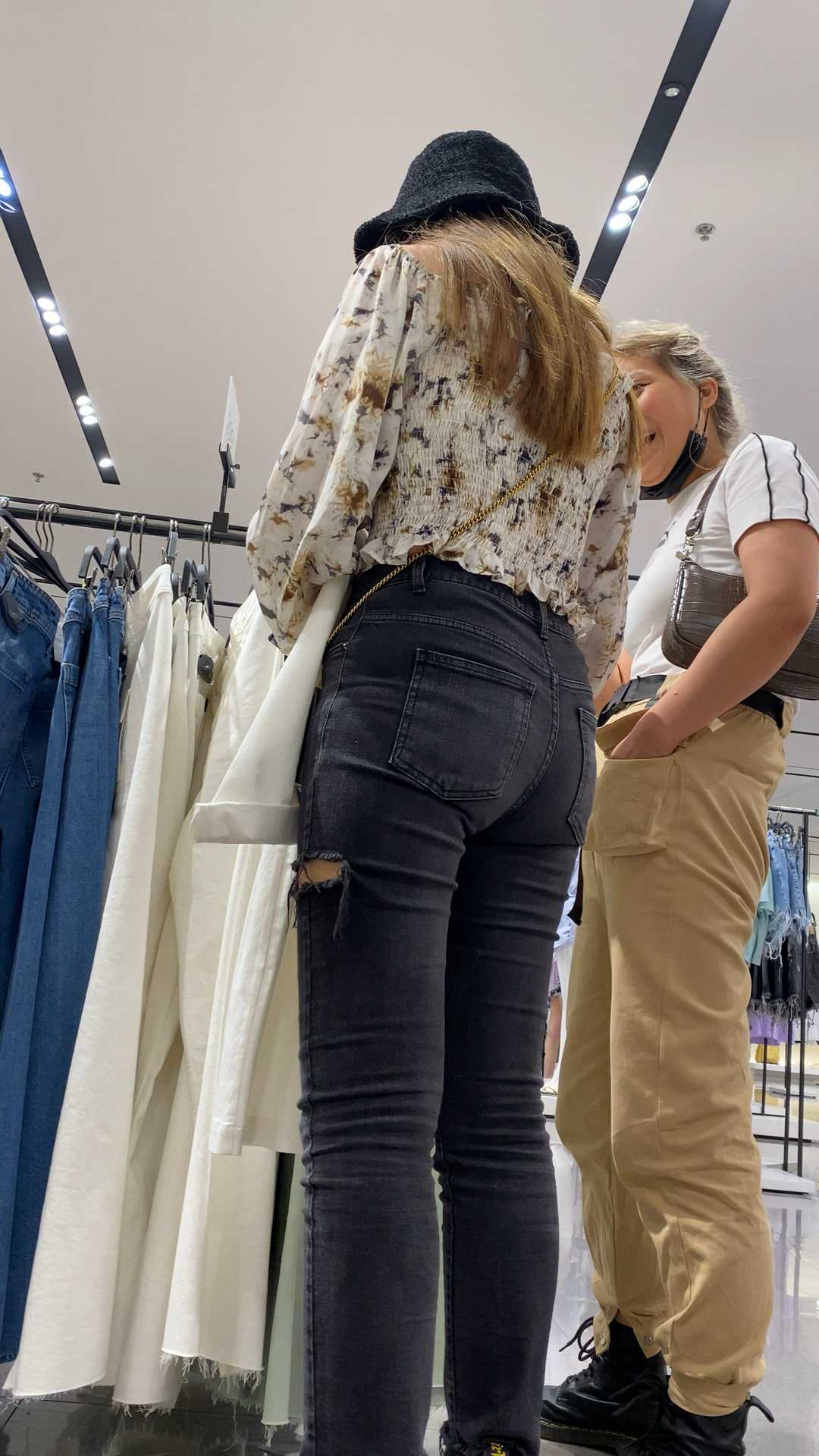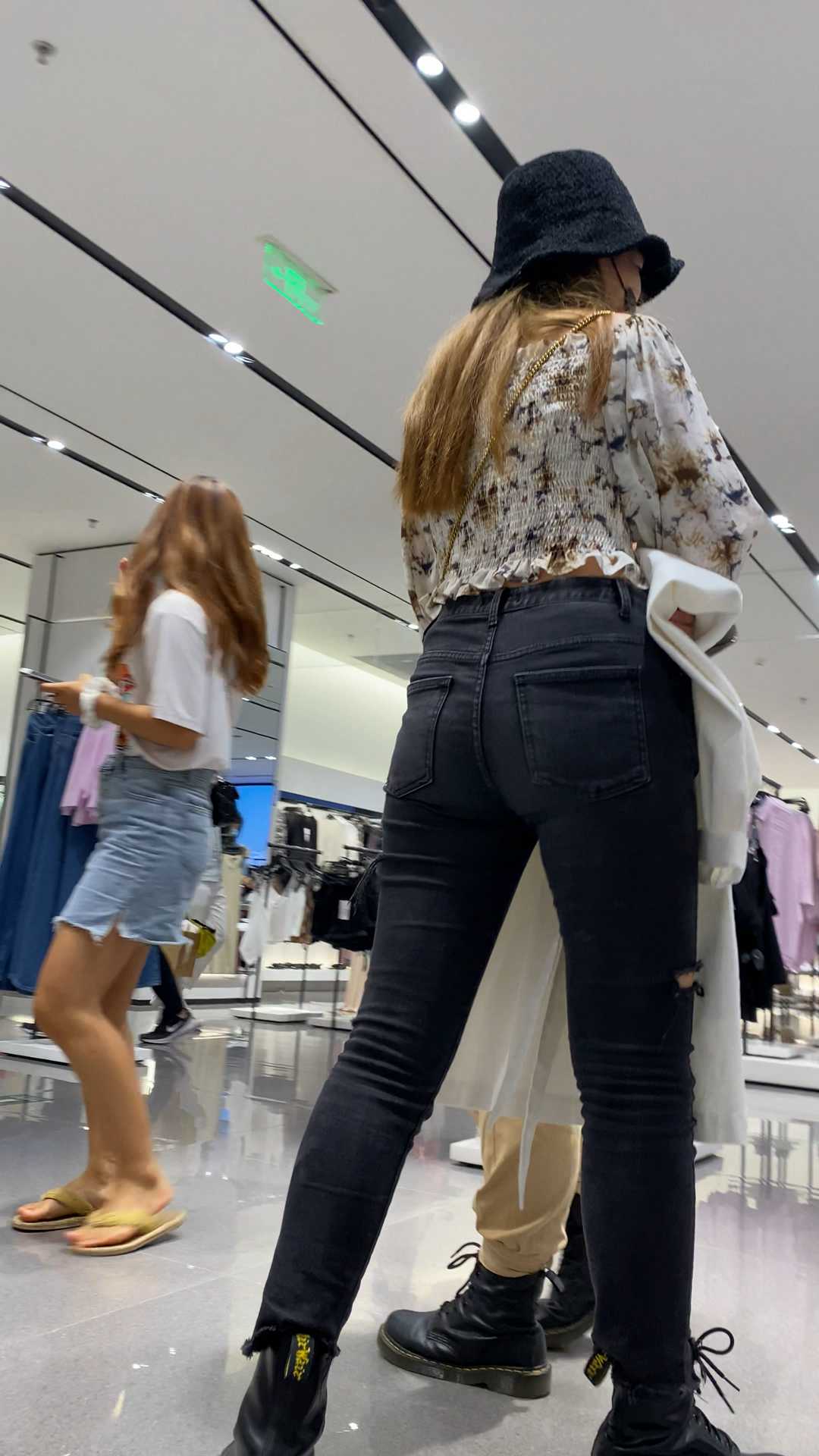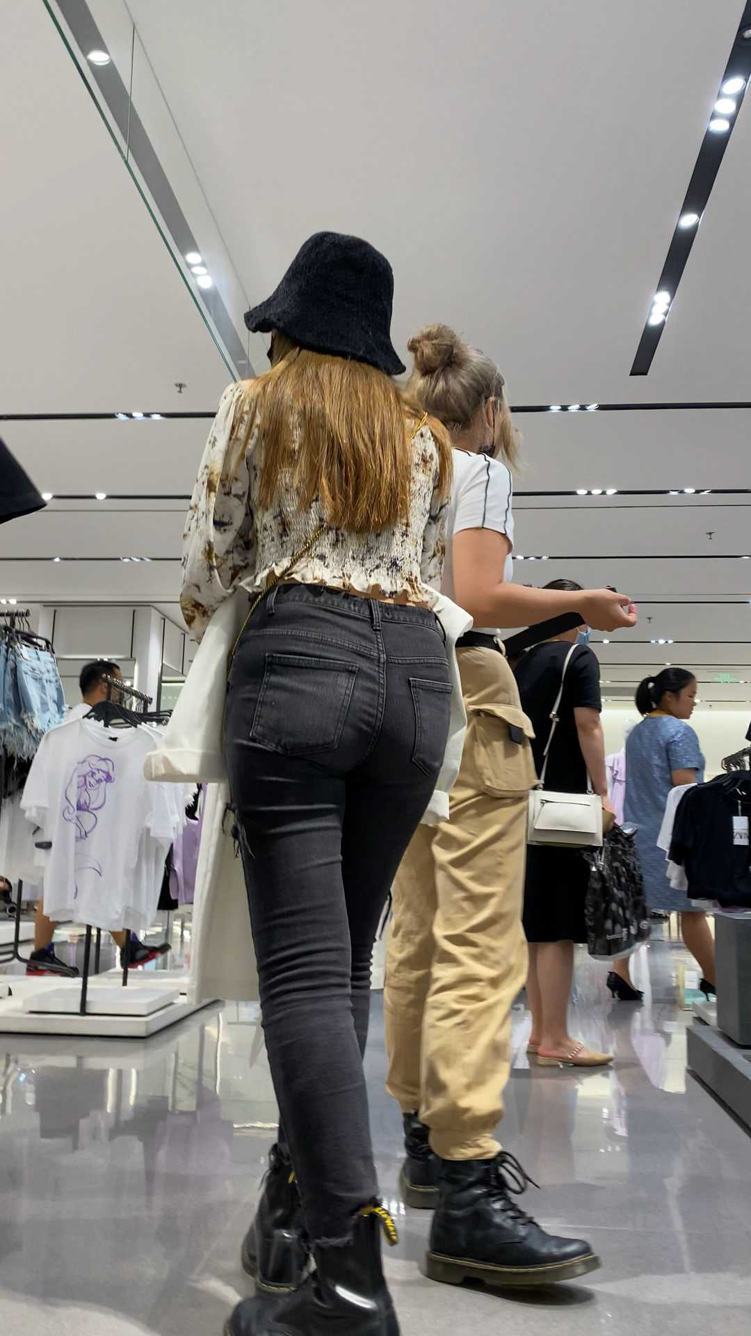 B1323翘臀灰牛仔紧内痕妹子