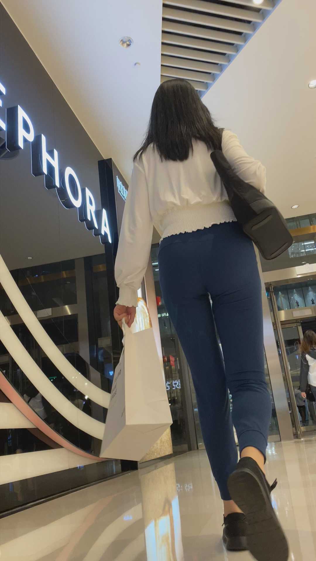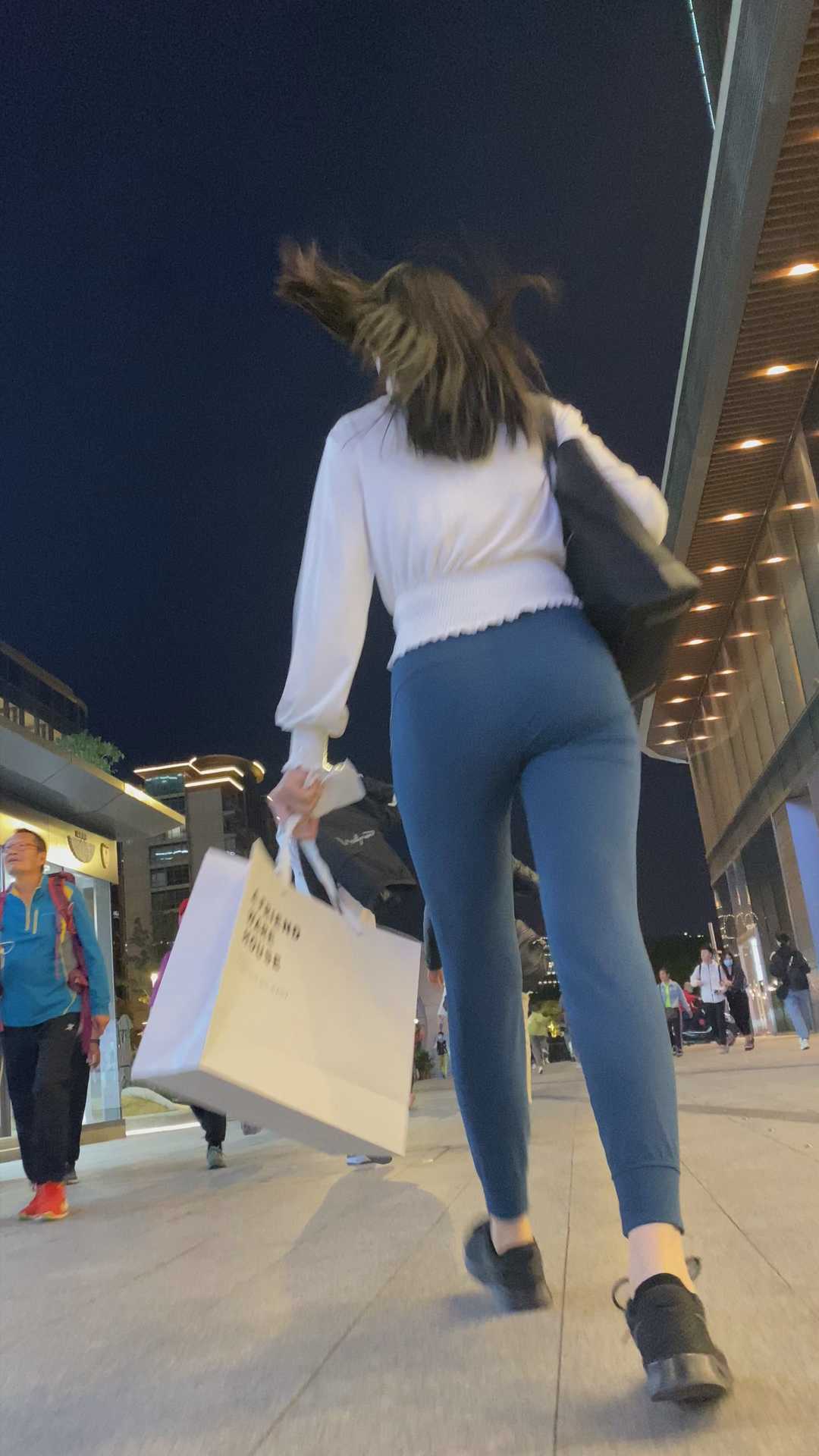 B1331蓝色包臀瑜伽裤紧臀妹子