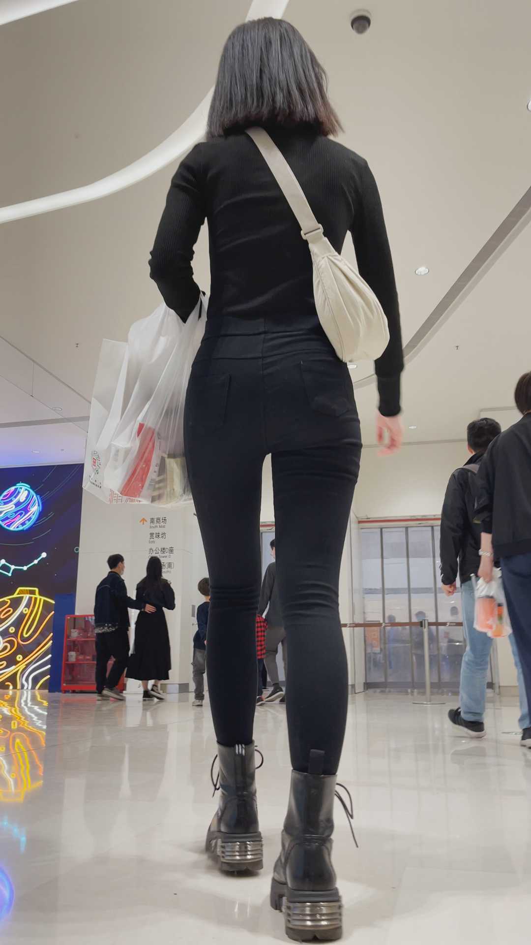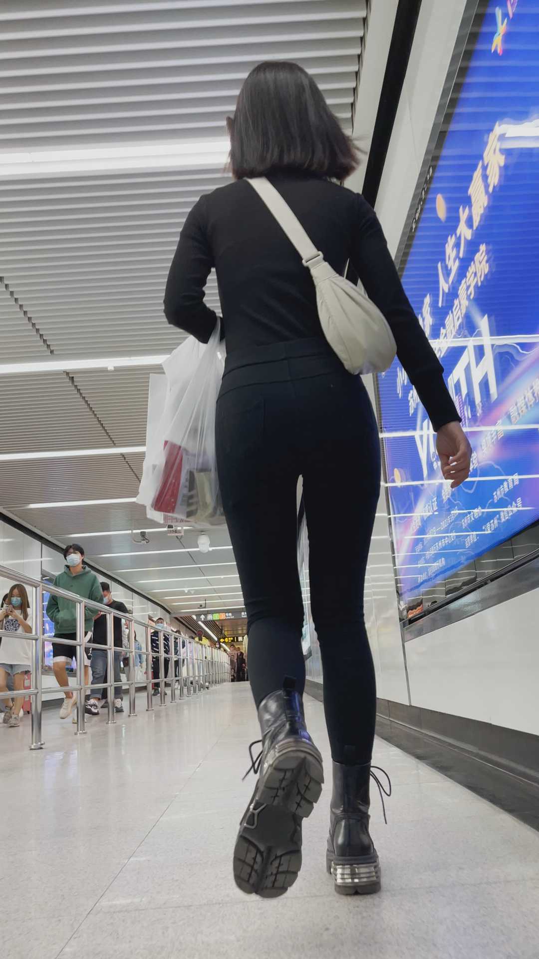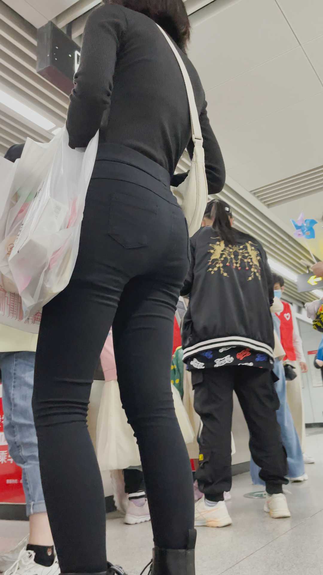 B1333街拍紧身黑裤小妹