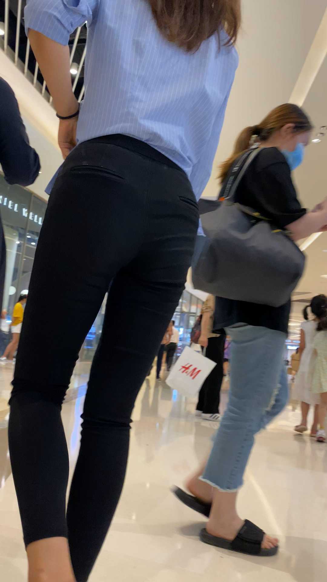 B1410饱满圆润黑裤金三角美女