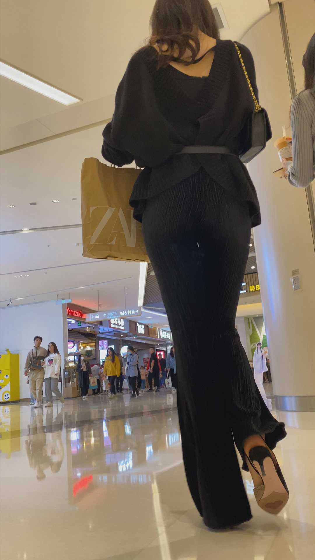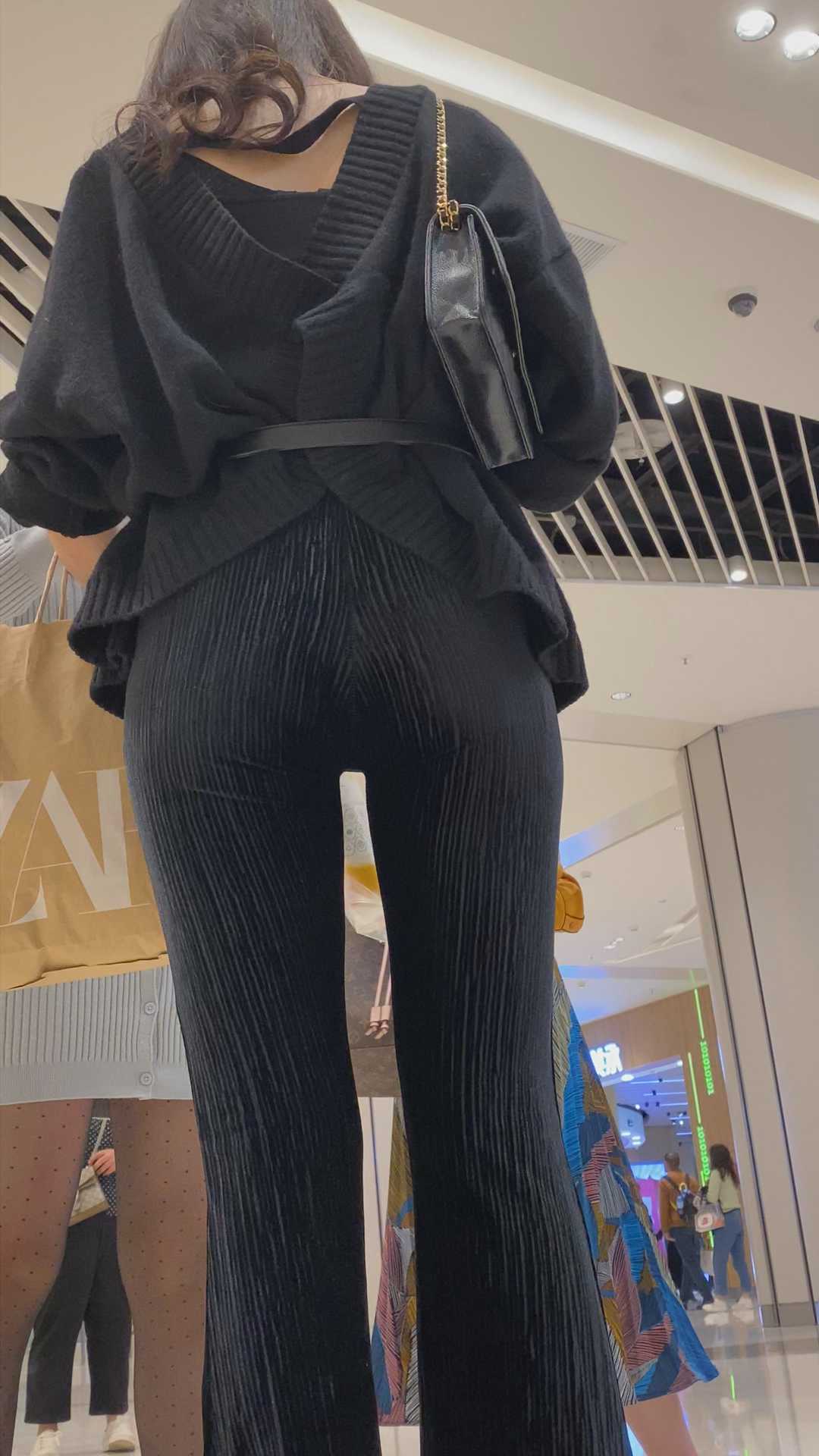 B1455高跟贴身布裤苹果臀OL